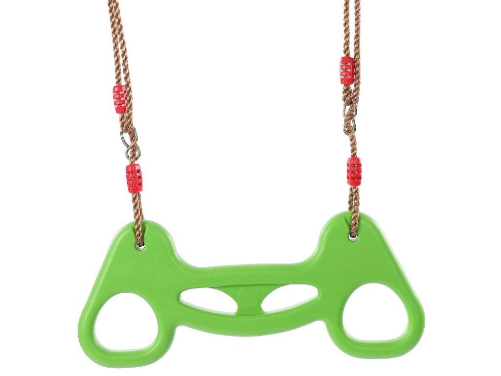 Dětské gymnastické kruhy s plastovým madlem v zelené barvě s závěsnými kroužky a výškově nastavitelnými lany.Nezbytný pomocník pro objevitele venkovní zábavy na dětském hřišti nebo do tělocvičny. Hlavní vlastnosti: nosnost: 80 kgtloušťka lana 1 cmDoplňkové parametry