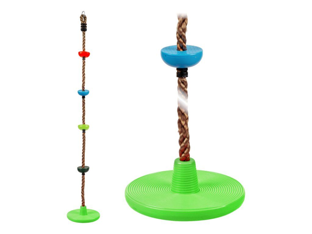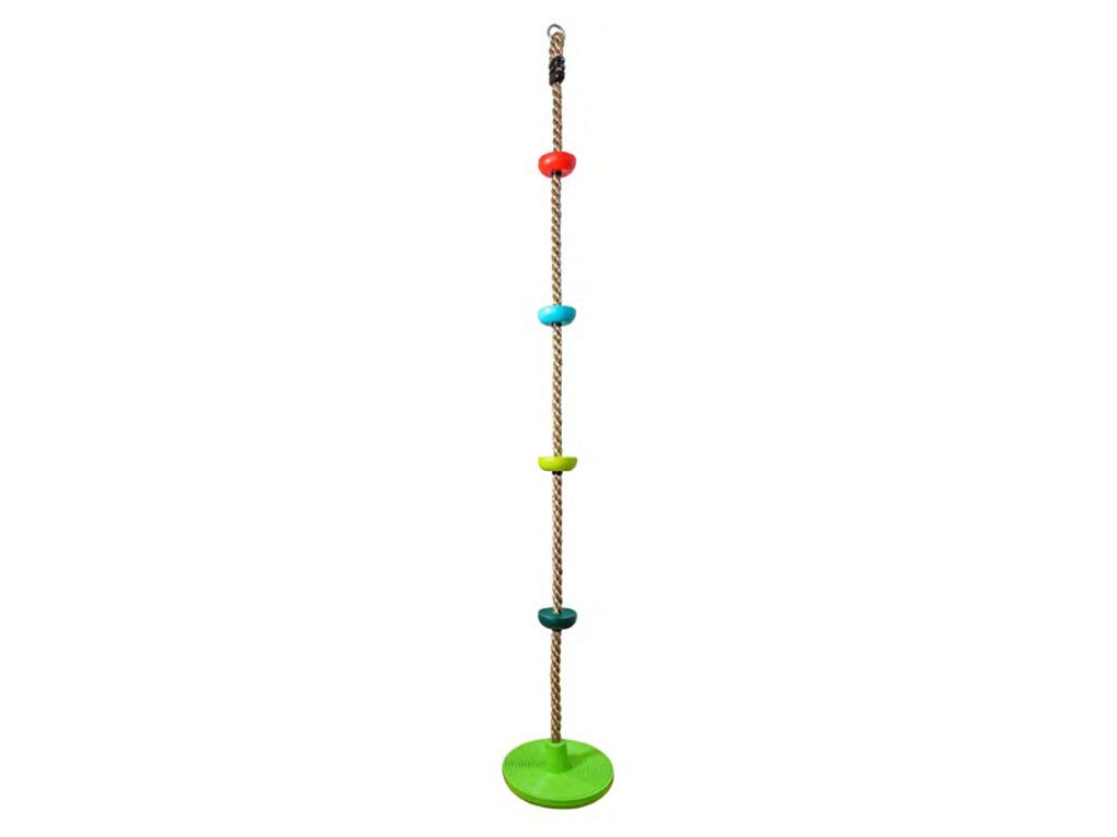 Dětské šplhací lano s barevnými disky a zakončeno kulatou houpačkou z plastu.Nezbytný pomocník pro objevitele venkovní zábavy na dětském hřišti nebo k domečku na stromě. Hlavní vlastnosti: nosnost 100 kgpevné lano o tloušťce 2,6 cmDoplňkové parametry