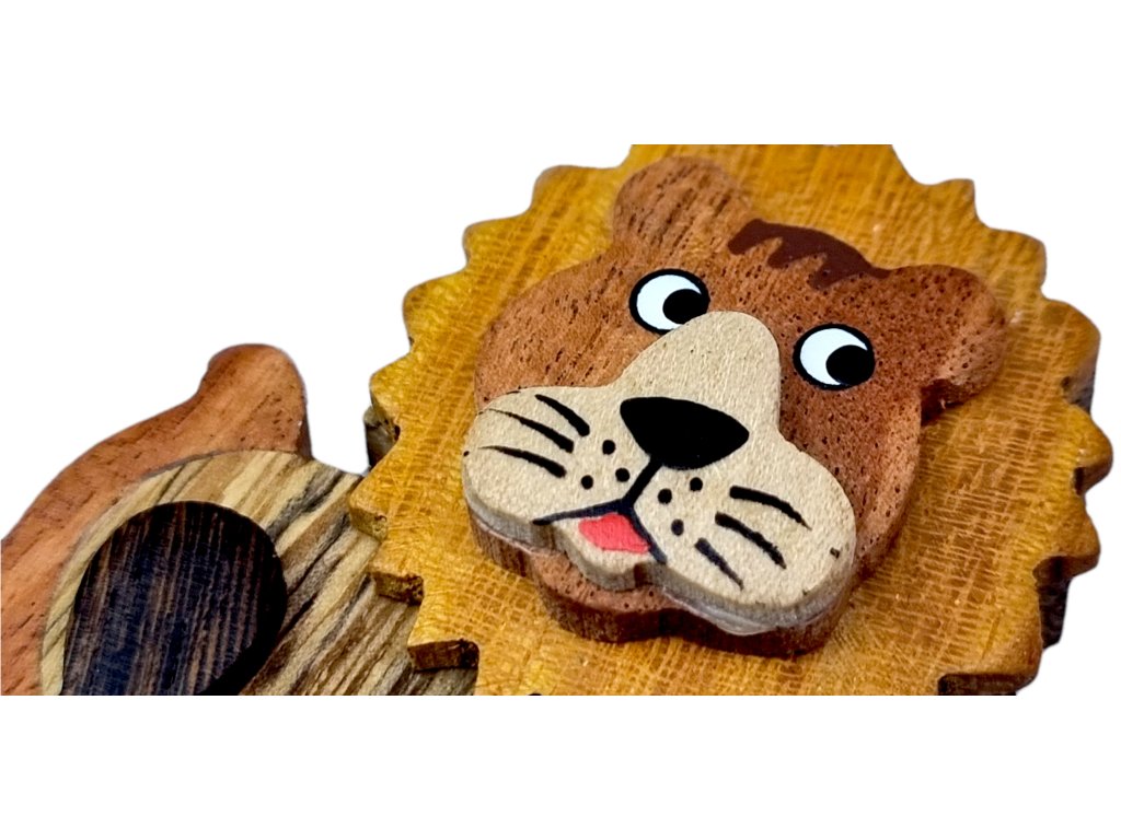 Dřevěný dekorativní magnet ve zvířecím motivu rozzáří každou lednici i tabuli. Roztomilé zvířátko jistě každému vykouzlí úsměv na tváři.Produkt je vyráběn ručně až z pěti druhů dřeva, které je přirozeně různobarevné – žlutý chlebovník různolistý, světlehnědý tamarind manilský, tmavěhnědá kasie obecná, růžová aniba, bílá gmelina arborea. Produkt je pouze ručně domalován, samotné dřevo je přírodní, není barvené. Hlavní vlastnosti: ideální pro milovníky přírody a zvířatskládá se až z 5 druhů přírodního dřevavyráběno i malováno ručnědekorativní prvekvhodné jako drobný dárekDoplňkové parametry
