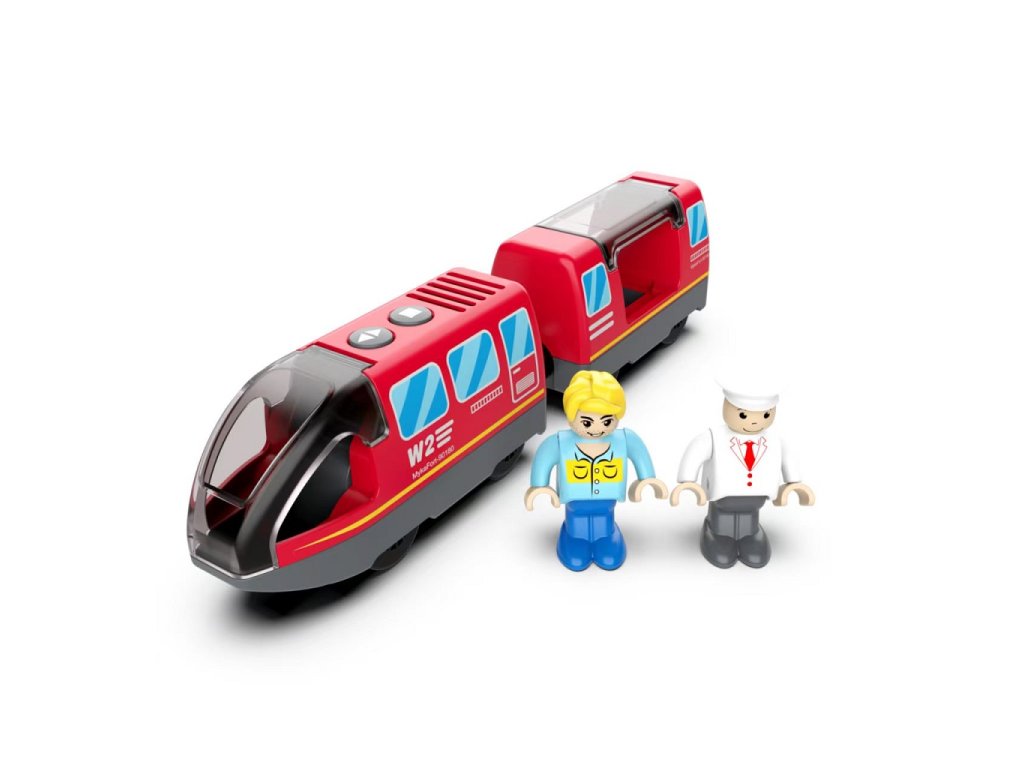 Originální elektrický vlak na baterie v moderním městském designu potěší každého malého nadšence dopravy! Červená souprava s realistickými detaily se snadno ovládá. Lokomotiva je poháněná bateriemi a sama jezdí, takže si děti mohou užít dynamickou a zábavnou hru. Lokomotiva s vagónkem je propojena magnetem, což umožňuje jednoduché sestavení i rozpojení. Součástí balení jsou dvě figurky, které obohatí dětské příběhy při hraní. Vlak lze kombinovat s běžnými dřevěnými vláčkodráhami a rozšiřovat tak herní svět podle vlastní fantazie. Ideální pro rozvoj jemné motoriky, koordinace a představivosti. Nabízí dětem skvělou zábavu a podporuje kreativní hru. Hlavní vlastnosti: lokomotiva s vagónkem a 2 figurkyelektrický pohon (baterie 2×AAA 1,5 V, nejsou součástí balení)magnetické spojování vagónůkompatibilní s vláčkodráhami ostatních výrobcůpodporuje jemnou motoriku, koordinaci a představivostkvalitní provedeníDoplňkové parametry