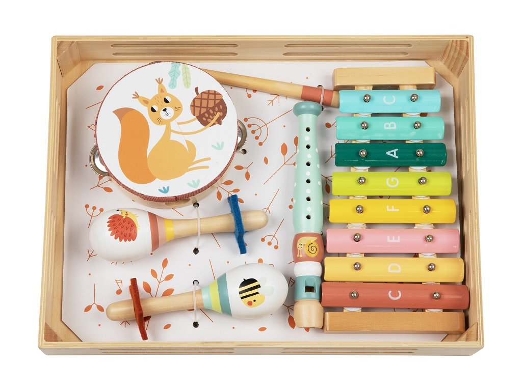 Objevte u svých dětí cit pro rytmus a melodii už v ranném věku! Tento hudební set s motivem lesních zvířátek skvěle kombinuje zábavu s edukací. Buduje vztah k hudbě, rozvíjí jemnou motoriku a podporuje dětskou fantasii. Volný způsob hry navíc podněcuje k sebevyjádření, rozhodování a nezávislosti. Hlavní vlastnosti: rozvíjí jemnou motoriku a kreativituhravý úvod do světa zvuku a rytmuveselý motiv zvířátek Značka a certifikát FSC® (Forest Stewardship Council) zaručuje, že dřevo, ze kterého byl produkt vyroben, nebylo vytěženo nelegálně a pochází z lesů obhospodařovaných šetrným či přírodě blízkým způsobem, ve kterém jsou dodržovány přísné environmentální a sociální požadavky. Značka FSC® na výrobku znamená, že svým nákupem pomáháte chránit lesy a podporujete šetrné, odpovědné či přírodě blízké hospodaření, díky kterému jsou naše lesy stabilnější, zdravější, mají přirozenou druhovou skladbu a lépe odolávají negativním následkům klimatických změn.Doplňkové parametry