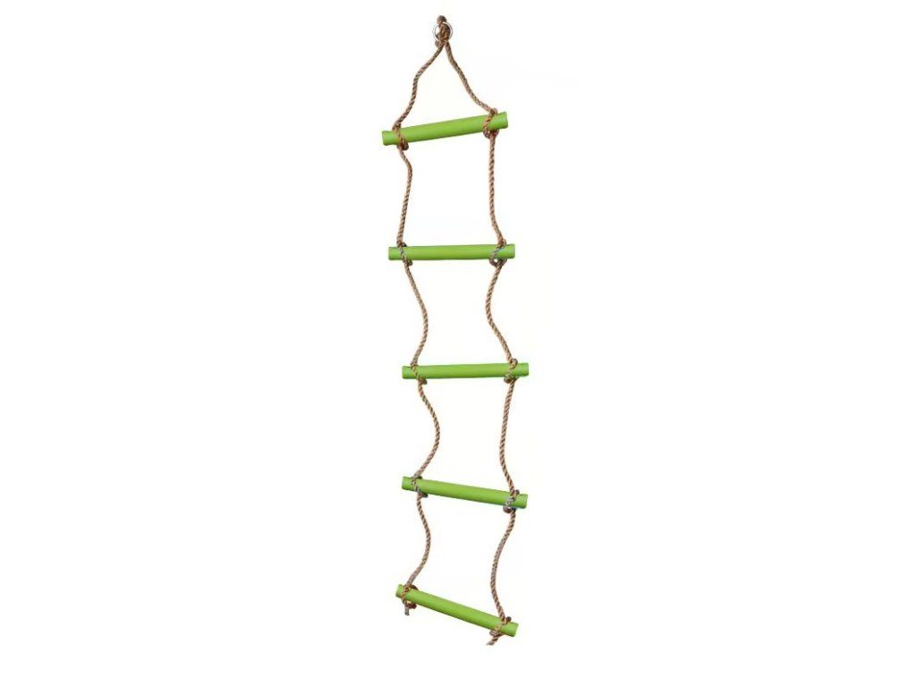 Lanový žebřík s 5 plastovými příčkami v zelené barvě.Nezbytný pomocník pro objevitele venkovní zábavy na dětském hřišti nebo k domečku na stromě. Hlavní vlastnosti: nosnost: 80 kgdélka žebříku je 160 cmDoplňkové parametry