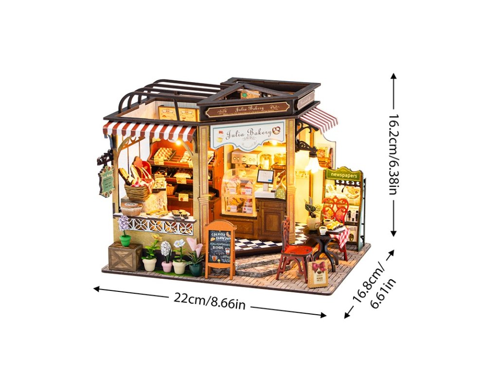 Zapojte svůj výtvarný, stavitelský cit a poznejte úchvatný svět detailů a miniatur. Jedinečné stavebnice v podobě domků, ulic či útulných příbytků nabízí příjemné chvíle při sestavování, lepení či jejich úpravě, kdy ve výsledku můžete hotovým kouskem zkrášlit zákoutí svého pokoje. Každá stavebnice je dodávána v rozloženém stavu a vybavena osvětlením. V balení spolu se všemi součástmi a podrobným návodem naleznete i příslušenství k sestavení. Miniatury jsou určeny dětem od 14 let. Hlavní vlastnosti: detailní zpracovánírozvíjí motoriku, představivost a trpělivoststavebnice včetně příslušenství k sestavení (lepidlo, pravítko, pinzeta...)LED osvětlení (2xAAA baterie nejsou součástí balení)Doplňkové parametry