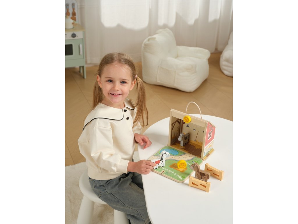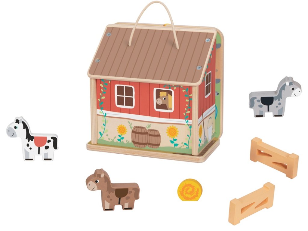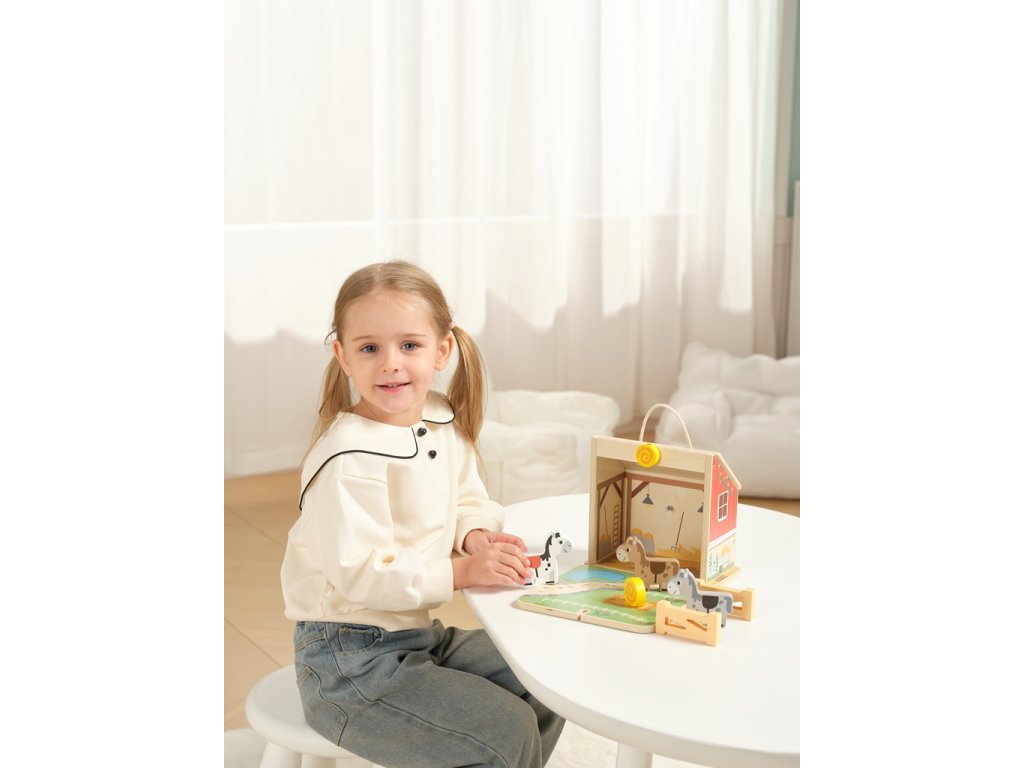 To je ale krásný den! Děti si užijí spoustu zábavy ve stájí s koníčky. Děti se díky roztomilým ilustracím dozvědí spoustu užitečných informací o tom, jak se o koníčky správně starat a co potřebují. Zadní stěna stáje je vyklápěcí a oboustranně pomalovaná. Do vnitřního prostoru si děti uklidí všechny figurky a díky praktickému uchu si mohou svou oblíbenou hračku vzít vždy s sebou. Hračka inspiruje k vyprávění příběhů a zlepšuje komunikační dovednosti. Díky kvalitnímu zpracování a kombinaci zářivých barev s barvou přírodního dřeva bude krásným doplňkem každého dětského pokojíčku nebo herny. Hlavní vlastnosti: stáj, 3 figurky koní, 2 překážky, balík senarozvíjí zručnost a jemnou motorikuvede k představivé hřevyklápěcí zadní stěna a praktické ucho pro přenášenívyrobeno ze dřeva s certifikací FSC® Značka a certifikát FSC® (Forest Stewardship Council) zaručuje, že dřevo, ze kterého byl produkt vyroben, nebylo vytěženo nelegálně a pochází z lesů obhospodařovaných šetrným či přírodě blízkým způsobem, ve kterém jsou dodržovány přísné environmentální a sociální požadavky. Značka FSC® na výrobku znamená, že svým nákupem pomáháte chránit lesy a podporujete šetrné, odpovědné či přírodě blízké hospodaření, díky kterému jsou naše lesy stabilnější, zdravější, mají přirozenou druhovou skladbu a lépe odolávají negativním následkům klimatických změn.Doplňkové parametry
