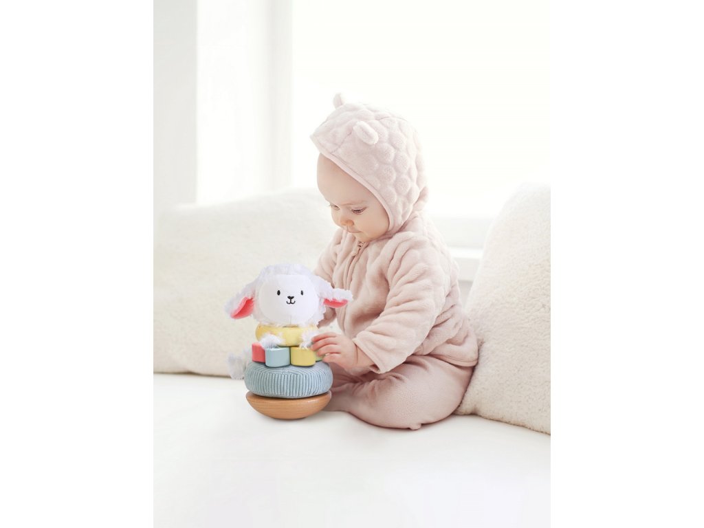 Ovečka zve děti ke hře plné barev, tvarů a objevování! Na dřevěnou tyčku, která tvoří tělo ovečky, se postupně nasazují kroužky o více velikostech z různých materiálů i textur. Nejdřív látkový kroužek s ocáskem a nakonec plyšová hlavička ovečky. Dokážete to nasadit správně, aby byla ovečka kompletní? Skládání rozvíjí jemnou motoriku, koordinaci ruka-oko i schopnost rozlišovat tvary, textury a velikosti. Hlavní vlastnosti: nasazování kroužků různých velikostí, materiálů i texturrozvíjí jemnou motoriku a koordinaci ruka-okopomáhá s rozpoznáváním tvarů a velikostíDoplňkové parametry