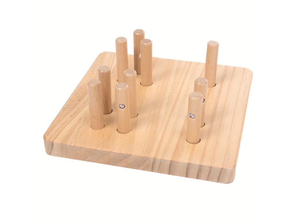 Nasazovací hra je skvělou pomůckou pro rozvoj jemné motoriky a logického myšlení dětí. Na dřevěné destičce jsou umístěny tyče, na které děti nasazují různé geometrické tvary – čtverec, trojúhelník, kruh a obdélník. Tyčky jsou v podložce pružně uchycené pomocí gumičky, takže se dají sklápět a hra je pro děti zcela bezpečná. Každý tvar má jiný počet dírek, což dětem pomáhá pochopit princip třídění podle tvaru i počtu otvorů. Při hře si děti procvičují koordinaci ruka-oko, zlepšují úchop a přesnost pohybu, což přispívá k celkovému rozvoji motorických dovedností. Nasazování tvarů na správná místa podporuje koncentraci, trpělivost i schopnost řešit jednoduché úkoly. Děti se také učí rozpoznávat a pojmenovat barvy, což podporuje zrakové vnímání a jazykový rozvoj. Tato didaktická hračka je vhodná pro malé děti od 1 roku a nabízí zábavnou formu učení prostřednictvím hry. Hlavní vlastnosti: 17 dílůsklápěcí tyčky pružně uchycené k podložce pomocí gumičkyrozvíjí motorické dovednosti a koordinaci ruka-okopodporuje koncentraci a trpělivostučí rozpoznávání tvarů a barevvhodné od 1 rokuDoplňkové parametry