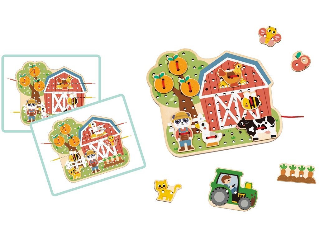 Vytvořte si farmu podle svých představ! Na základní obrázek s motivem stodoly se stromem připojujte pomocí šňůrky další součásti obrázku. Kam patří kravička a traktor? Budou jablíčka na stromě nebo už ze stromu opadala? A kam umístíte záhon s mrkví? Fantazii se meze nekladou! Hračka zábavnou formou rozvíjí jemnou motoriku a koordinaci ruka-oko. Inspiruje k vyprávění příběhů a zlepšuje komunikační dovednosti a představivost. Je vyrobena z kvalitního dřeva z certifikací FSC®. Hlavní vlastnosti: 23 dílůrozvíjí jemnou motoriku a koordinaci ruka-okozlepšuje komunikační dovednosti vyrobeno ze dřeva s certifikací FSC®vhodné od 3 let věku Značka a certifikát FSC® (Forest Stewardship Council) zaručuje, že dřevo, ze kterého byl produkt vyroben, nebylo vytěženo nelegálně a pochází z lesů obhospodařovaných šetrným či přírodě blízkým způsobem, ve kterém jsou dodržovány přísné environmentální a sociální požadavky. Značka FSC® na výrobku znamená, že svým nákupem pomáháte chránit lesy a podporujete šetrné, odpovědné či přírodě blízké hospodaření, díky kterému jsou naše lesy stabilnější, zdravější, mají přirozenou druhovou skladbu a lépe odolávají negativním následkům klimatických změn.Doplňkové parametry