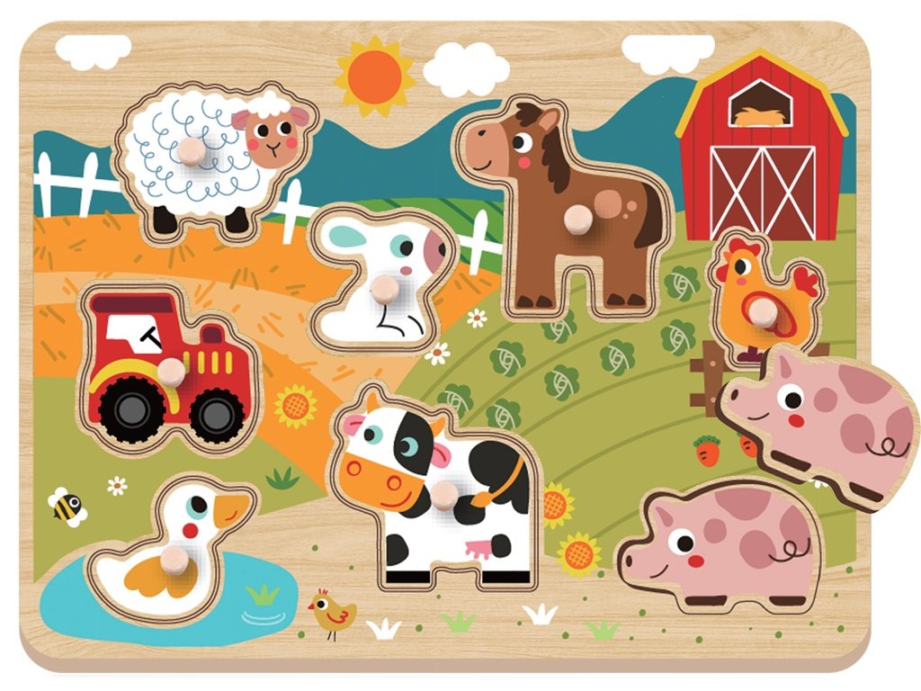 Jaký to krásný pohodový den! Sluníčko svítí a většina zvířátek vyšla z farmy se napást. Toto překrásné vkládací puzzle přináší skvělou možnost jak u našich nejmenších trénovat jemnou motoriku, trpělivost a poznávání zvířátek. Skládá se ze základny a 8 odnímatelných dílků. Hračka je vyrobena z kvalitního FSC dřeva a má krásné ilustrace díky kterým může také posloužit jako dekorace v dětském pokojíčku. Hlavní vlastnosti: obsahuje 8 vkládacích dílůrozvíjí smyslové dovednosti a koncentraciprocvičuje jemnou motoriku a trpělivost Značka a certifikát FSC® (Forest Stewardship Council) zaručuje, že dřevo, ze kterého byl produkt vyroben, nebylo vytěženo nelegálně a pochází z lesů obhospodařovaných šetrným či přírodě blízkým způsobem, ve kterém jsou dodržovány přísné environmentální a sociální požadavky. Značka FSC® na výrobku znamená, že svým nákupem pomáháte chránit lesy a podporujete šetrné, odpovědné či přírodě blízké hospodaření, díky kterému jsou naše lesy stabilnější, zdravější, mají přirozenou druhovou skladbu a lépe odolávají negativním následkům klimatických změn.Doplňkové parametry