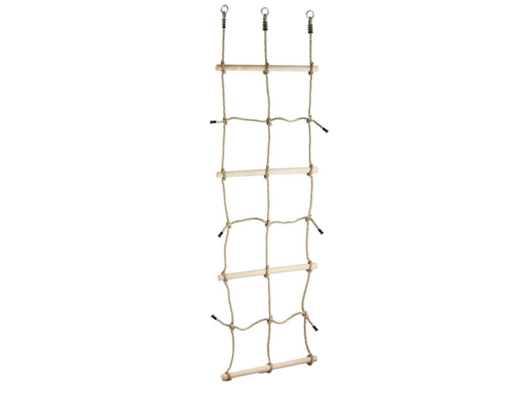Šplhací síť s dřevěnými příčkami s 3 závěsnými kroužky.Nezbytný pomocník pro objevitele venkovní zábavy na moderním dětském hřišti nebo k domečku na stromě. Hlavní vlastnosti: nosnost: 100 kgvýška sítě je 2 m3 závěsné kroužkyDoplňkové parametry