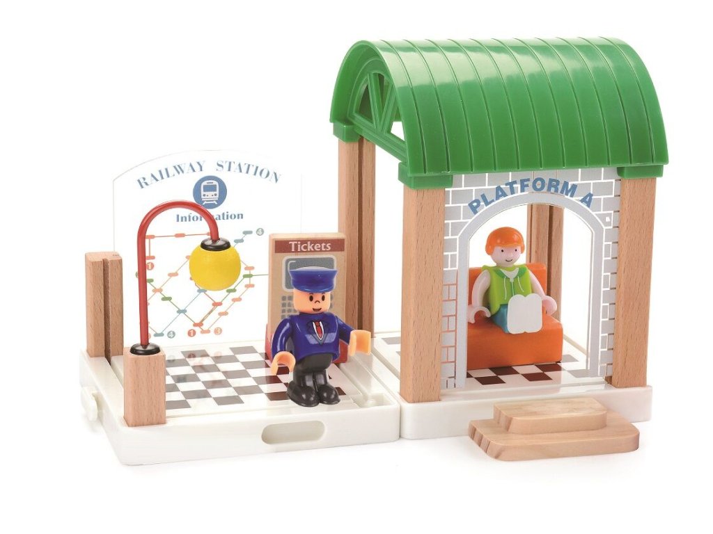 Tato detailně propracovaná dřevěná vláčkodráha s motivem vesničky nabízí dětem nekonečné možnosti hry. Obsahuje vše, co potřebují k vytvoření vlastního malého světa: vláček se třemi vagony, koleje, stanici, zvedací závoru, taxi, sanitku, figurky lidí, semafory, dopravní značky, stromy a potištěnou podložku s ulicemi a přechody. Všechny prvky jsou navrženy tak, aby rozvíjely představivost, jemnou motoriku a fantazii. Každá jízda může být jiná – děti mohou naložit pasažéry, projet vesnicí, zastavit u stanice nebo se vyhnout autům na silnici. Ideální jako dárek nebo doplněk dětského pokojíčku. A pro ještě větší zábavu lze vláčkodráhu kombinovat se sadou Vláčkodráha Město 90 dílů (kód produktu 2D98209) – společně vytvoří barevné a rozmanité železniční městečko!Doplňkové parametry