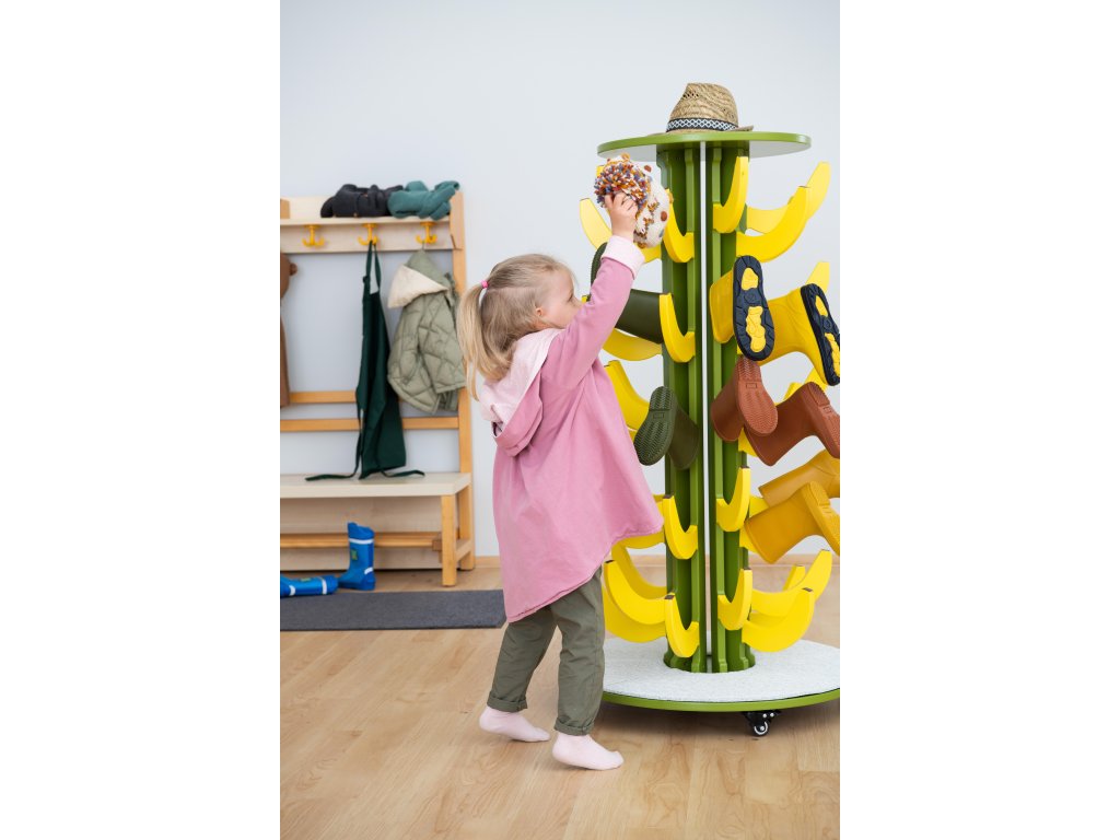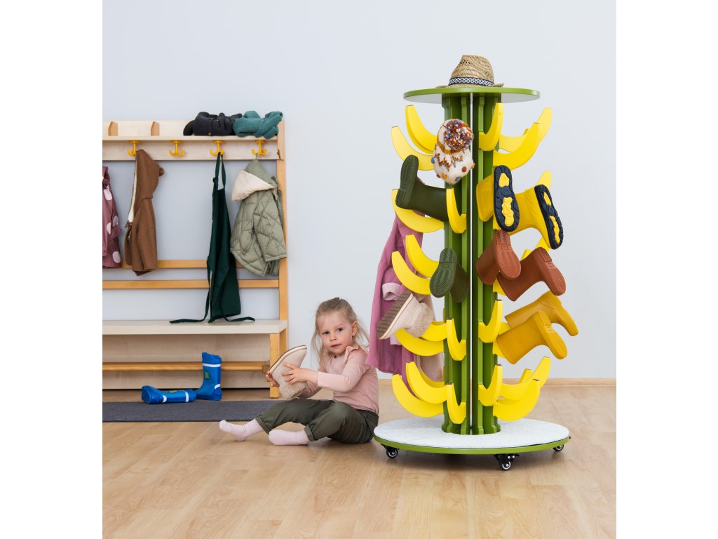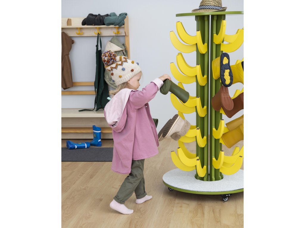 Roztomilý věšák ve tvaru banánu pro odkládání holinek, bot i rukavic.