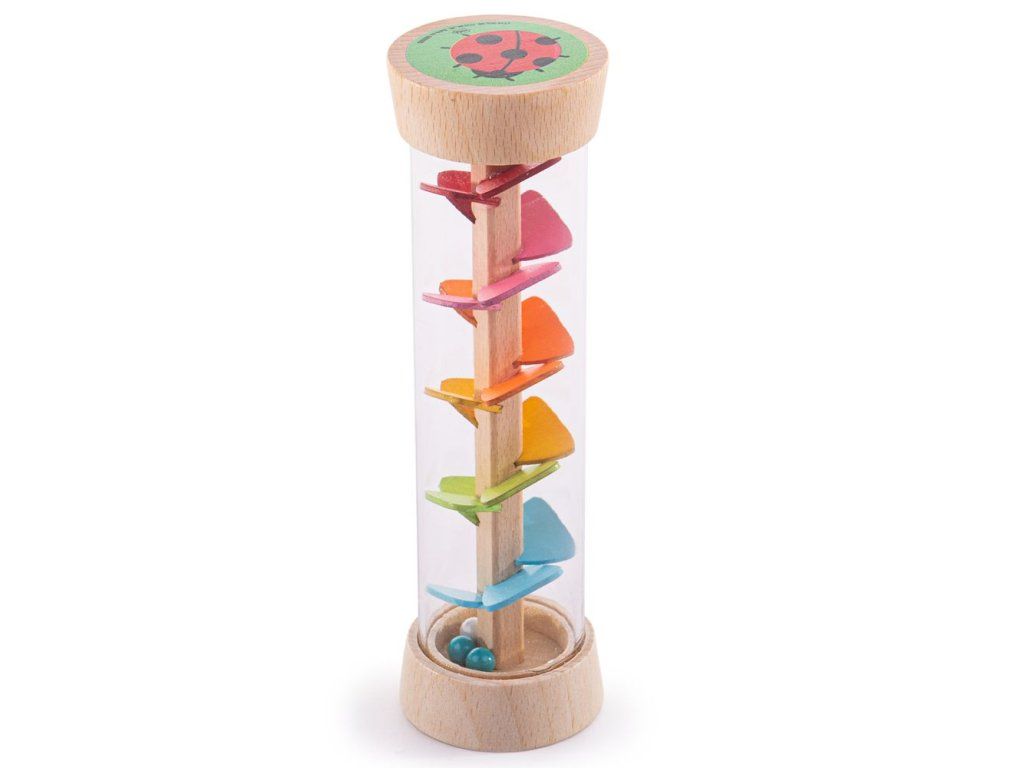 Zabavte ty nejmenší s naší rozkošnou dřevěnou dešťovou holí. Obnovuje jemný uklidňující zvuk deště. Jak budete nástrojem otáčet, barevné korálky budou kaskádovitě padat průhlednou trubicí a vytvářet fascinující zvuky a vizuální efekty. Ideální smyslová hračka pro miminko. Naše senzorická hračka byla speciálně navržena pro nenechavé malé ručičky a pro podporu koordinace ruka-oko při otáčení, třesení a otáčení s holí. Dešťová hůl je dodávána s roztomilými ilustracemi na obou koncích, motýlem a beruškou pro větší vizuální stimulaci. Tato dětská smyslová hračka je skvělým dárkem. Vyrobeno z vysoce kvalitních, zodpovědně získaných materiálů a odpovídá současným evropským bezpečnostním normám. Hlavní vlastnosti: rozvíjí koordinaci ruka-oko a stimuluje smyslyvhodné od narozenívyrobeno z kvalitních zodpovědně získaných materiálůDoplňkové parametry