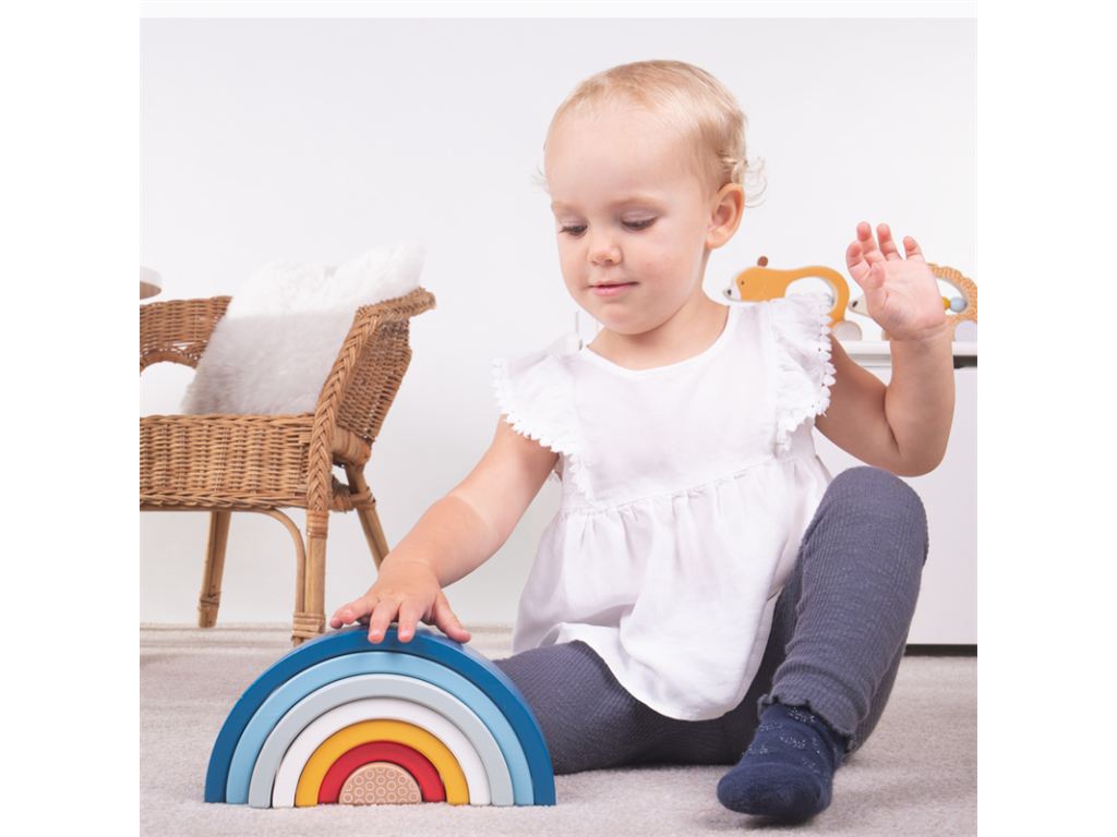 S těmito stohovacími půlkruhy mohou malé ručičky sestavovat různé tvary a předměty, zatímco se učí vše o různých velikostech. Vyrobeno z masivního dřeva a obarveno netoxickými barvami. Jakmile hrací doba skončí, může sloužit jako zábavná dekorace do ložnice nebo školky pro vaše nejmenší. Rozvíjí kreativitu a obratnost. Vyrobeno z vysoce kvalitních 100% FSC certifikovaných materiálů a zodpovědně pocházejících materiálů. Vyhovuje současným evropským bezpečnostním normám. Hlavní vlastnosti: krásná duha v pestrých barváchobsahuje 7ks duhyrozvíjí kreativitu a obratnost Značka a certifikát FSC® (Forest Stewardship Council) zaručuje, že dřevo, ze kterého byl produkt vyroben, nebylo vytěženo nelegálně a pochází z lesů obhospodařovaných šetrným či přírodě blízkým způsobem, ve kterém jsou dodržovány přísné environmentální a sociální požadavky. Značka FSC® na výrobku znamená, že svým nákupem pomáháte chránit lesy a podporujete šetrné, odpovědné či přírodě blízké hospodaření, díky kterému jsou naše lesy stabilnější, zdravější, mají přirozenou druhovou skladbu a lépe odolávají negativním následkům klimatických změn.Doplňkové parametry