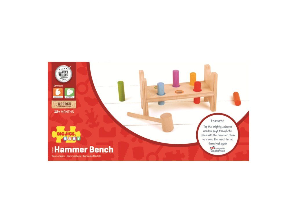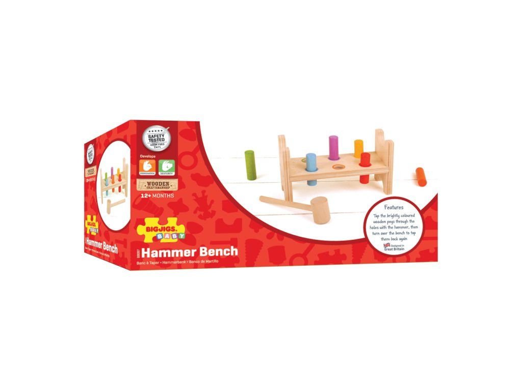 Rozvoj koordinace ruka-oko nebyl nikdy zábavnější než u této zatloukačky. Klepnutím na pestrobarevné dřevěné kolíky v otvorech směrem dolů vytvořte plochý pracovní stůl. Pak otočte celou zatloukačku a začněte znovu! Tato dřevěná zatloukačka se dodává s robustním kladivem a má mírně zakřivené hrany. Pomáhá rozvíjet obratnost a koordinaci. Vyrobeno z vysoce kvalitních, odpovědně získaných materiálů. Odpovídá současným evropským bezpečnostním normám. Skládá se z 8 kusů hry. Hlavní vlastnosti: rozvíjí koordinaci ruka-okorozvíjí obratnostobsahuje 8 kusů hryDoplňkové parametry