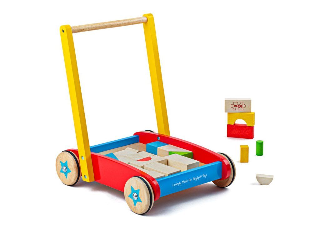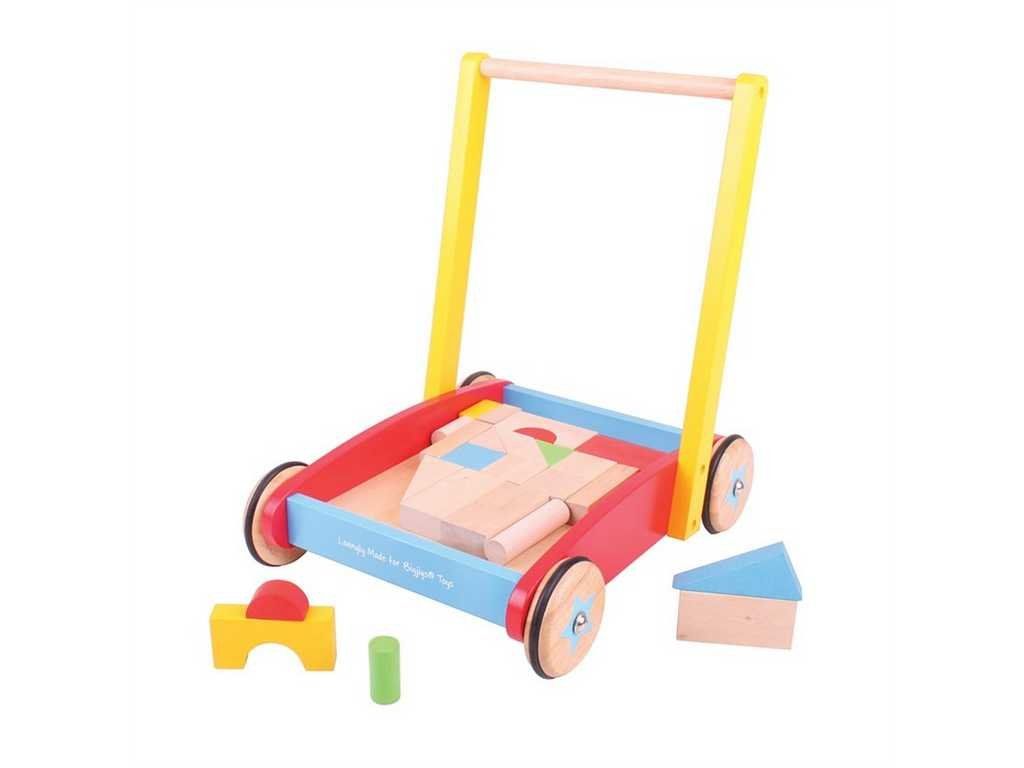 Bigjigs Baby Dřevěné kostky ve vozíku