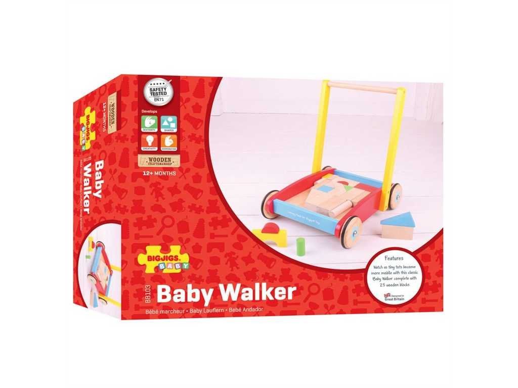 Klasické dřevěné chodítko Bigjigs Toys s kostkami je ideální pro zábavu a první krůčky dětí. Živé barvy kostek budou stimulovat a bavit dětí, když manévrují s dětským chodítkem a skládají kostky.Naše dětské chodítko je dodáváno s robustním dřevěným rámem a snadno uchopitelnými řídítky pro malé prsty. Podporuje rovnováhu a koordinaci pohybů. Když je čas si odpočinout od všech těch procházek, je čas na hraní. V praktické dřevěné základně je uloženo mnoho stavebních kostek všech tvarů, barev a velikostí. Vyrobeno z vysoce kvalitních, zodpovědně získaných materiálů. Splňuje aktuální evropské bezpečnostní normy. Hlavní vlastnosti: podporuje rovnováhustabilní konstrukceobsahuje 25 kostekvyrobeno z materiálů prémiové kvalityvyžaduje montážDoplňkové parametry