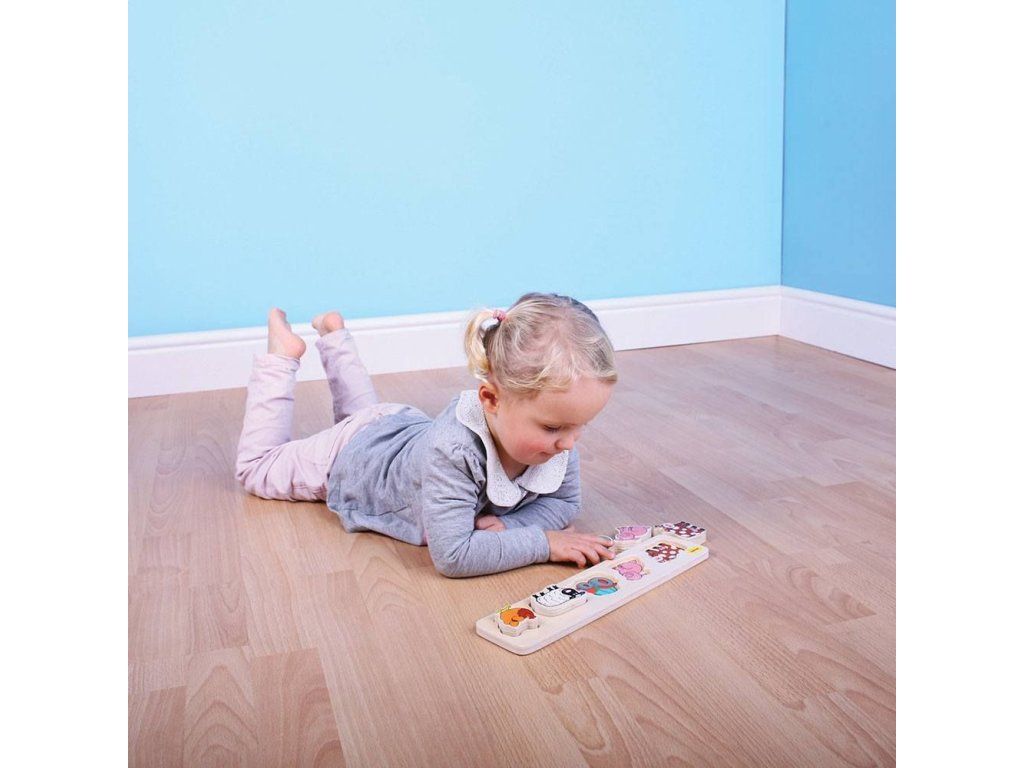 Přiřadte obrázky jednotlivých kousků se stejnými obrázky na dřeněném panelu. Při tom můžete s dítětem mluvit o jednotlivých zvířátkach a učit jej, jaké zvuky které zvíře vydává. Kompaktní rozměry zajišťují spoustu využití doma nebo na cestách. Pro tohle vkládací puzzle je charakteristická tloušťka použitého materiálu - dřeva 2 cm, dětem to zjednodušuje úchop dílků. Hlavní vlastnosti: vyrobeno z vysoce kvalitních materiálů, které pocházejí ze zodpovědných zdrojůvyhovuje současným evropským bezpečnostním normámDoplňkové parametry