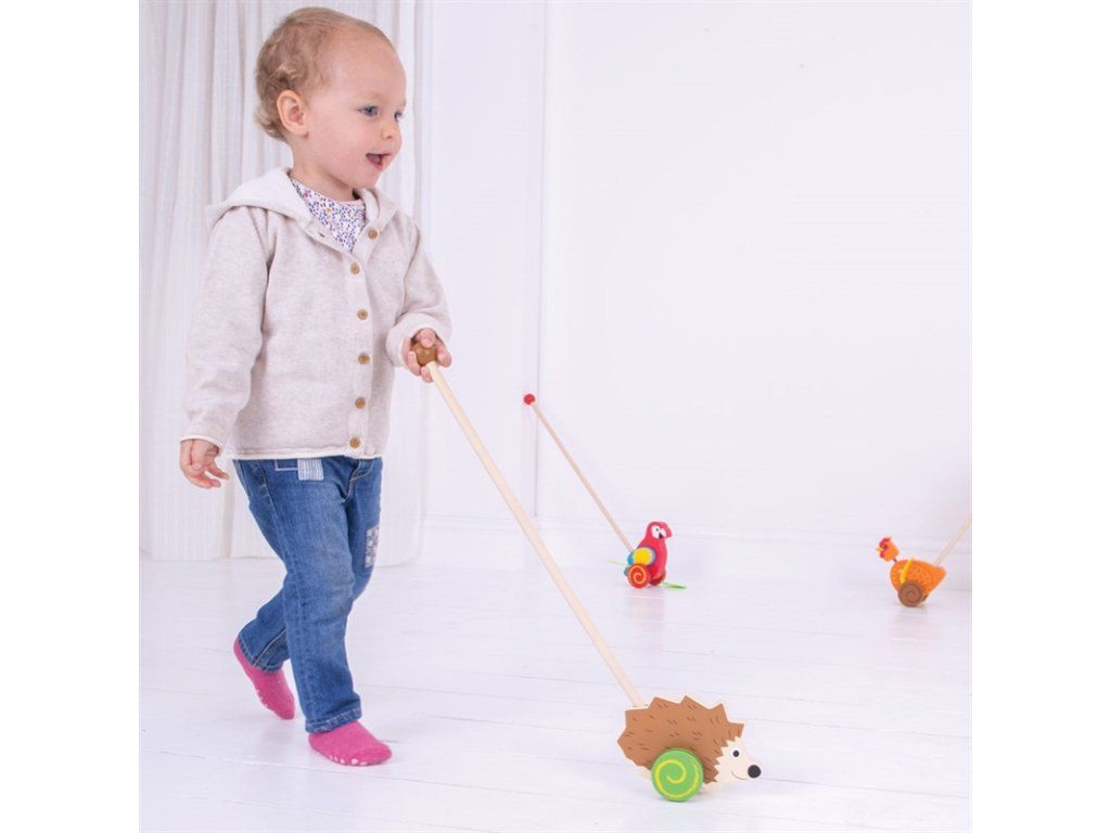 Rovnováha a pohyb jsou dovednosti, které dětem tento jezdík pomůže rozvinout. Držadlo je zakončeno kuličkou, lze jej tedy jednoduše uchopit. Děti mohou ježka strkat nebo tahat doma i venku. Tato hračka podporuje děti v chůzi a porozumění příčině a následku. Vyrobeno z kvalitních materiálů ze zodpovědných zdrojů. Splňuje evropské bezpečnostní standardy. Hlavní vlastnosti: podporuje pohybovou aktivitu rozvíjí rovnováhu zábavnou formoupogumovaná kolečka pro tichý chod na pevných podlaháchDoplňkové parametry