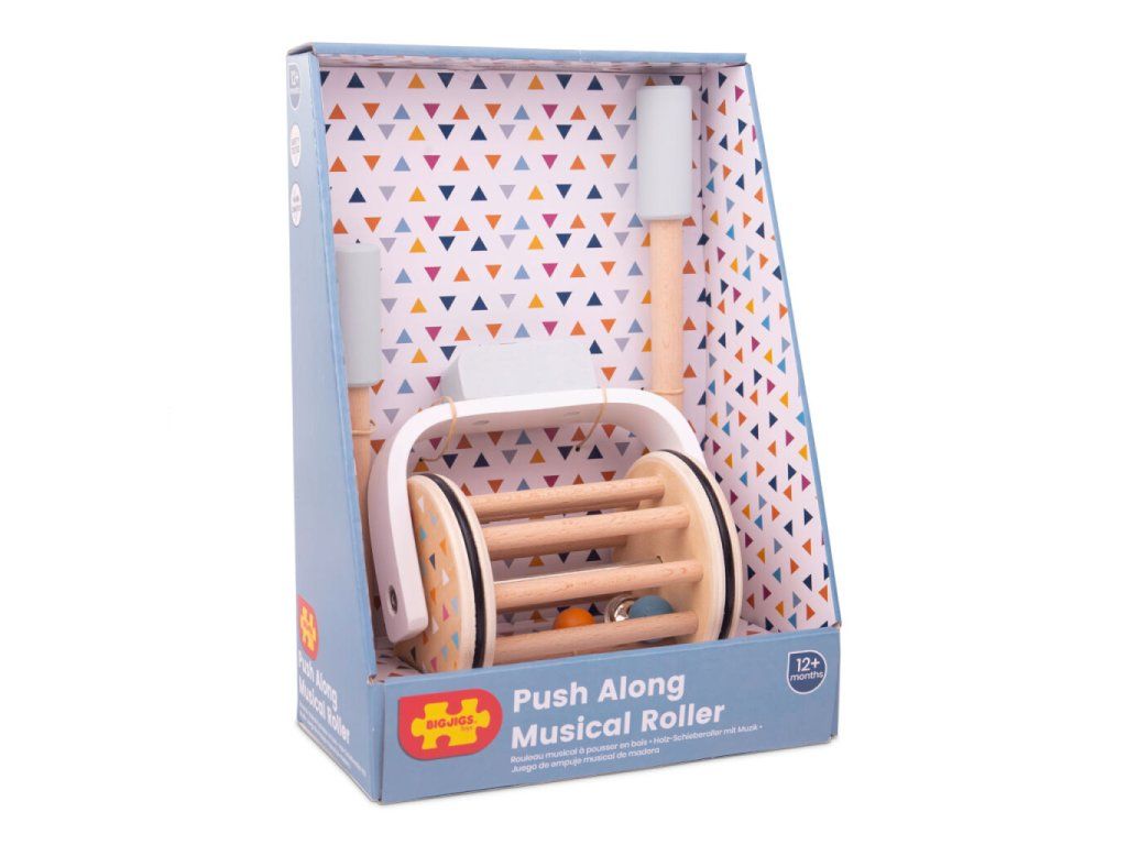 Krásná dřevěná hračka, hudební váleček ze 100% FSC® dřeva hravě procvičí dětskou zručnost, motoriku a podpoří rozvoj jejich smyslů. Váleček se pohybuje pomocí dlouhé tyče, stačí jí strkat dopředu a uslyšíte jak se rolnička pohupuje mezi dřevěnými laťkami. Vydává opravdu kouzelný zvuk.Hračka je vyrobena v kombinaci přírodního a barevného dřeva, má barevné detaily ve tvaru trojúhelníků, barvičky stimulují zrak, rolnička stimuluje sluch. Hudební váleček je vyroben ze 100% FSC® materiálů prémiové kvality. To znamená, že každý použitý strom je znovu vysazen a ponéchan přirozenému růstu. Dřevo je hladké (nemusíte se bát třísek) a barvy jsou bezpečné pro děti. Hlavní vlastnosti: od 12 měsícůrozvíjí smyslové dovednosti100% FSC® dřevo Značka a certifikát FSC® (Forest Stewardship Council) zaručuje, že dřevo, ze kterého byl produkt vyroben, nebylo vytěženo nelegálně a pochází z lesů obhospodařovaných šetrným či přírodě blízkým způsobem, ve kterém jsou dodržovány přísné environmentální a sociální požadavky. Značka FSC® na výrobku znamená, že svým nákupem pomáháte chránit lesy a podporujete šetrné, odpovědné či přírodě blízké hospodaření, díky kterému jsou naše lesy stabilnější, zdravější, mají přirozenou druhovou skladbu a lépe odolávají negativním následkům klimatických změn.Doplňkové parametry