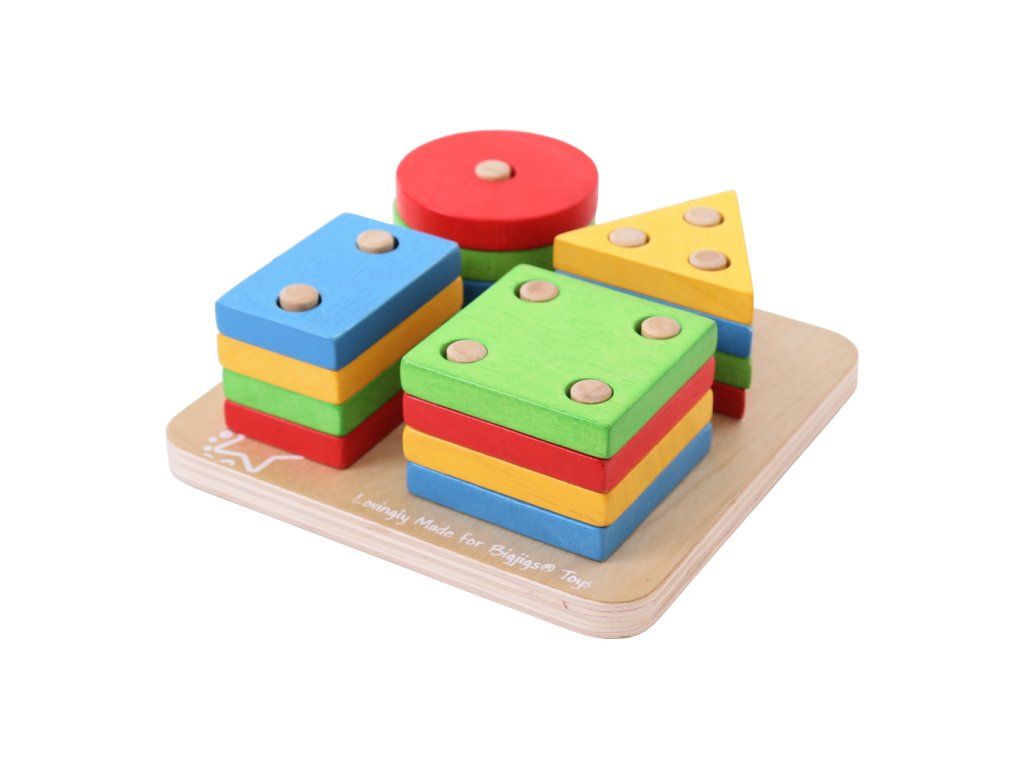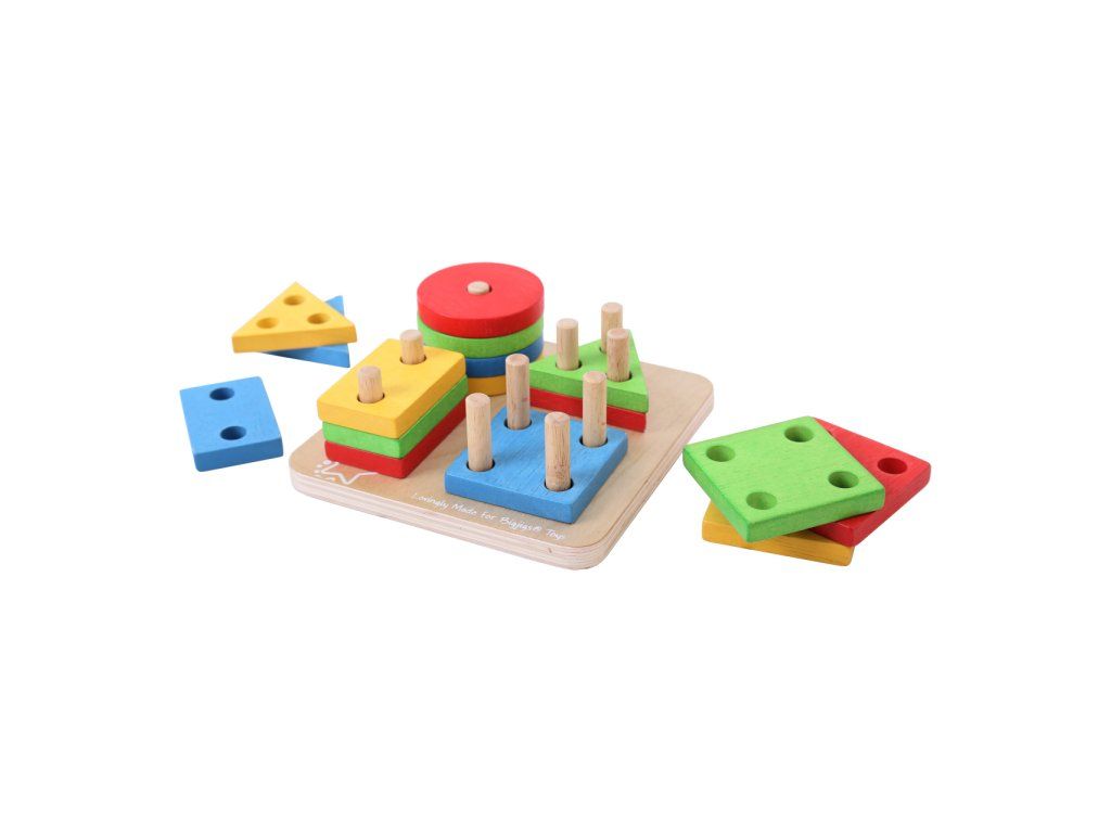 Bigjigs Baby Nasazování barevných tvarů na tyče