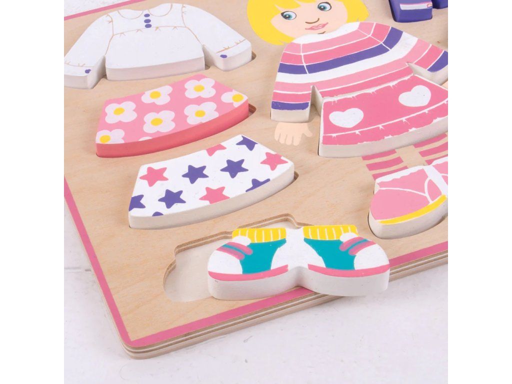 Tento komplet s deseti výměnnými díly si vaše deti určitě zamilují. S touto nádherně zábavnou Dressing Girl Puzzle můžou zaměňovat oblečení, jak jim to jejich představivost dovolí. Každý kus je velmi pestře zbarvený a jednoduchý pro práci malých prstíků vašeho dítěte. Pro toto vkládací puzzle je charakteristická tloušťka použitého materiálu - dřeva 2 cm. Dětem to zjednodušuje úchop dílků a bezpečnost hračky. Hlavní vlastnosti: součástí balení je vše dle obrázkupomáhá rozvíjet zručnost, dovednost a koncentracivyrobeno z vysoce kvalitních, zodpovědně získaných materiálůsplňuje aktuální evropské bezpečnostní normy10 dílků puzzleDoplňkové parametry