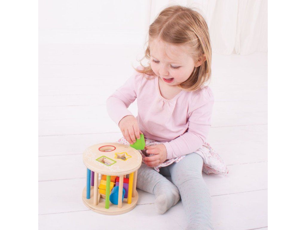 Velmi oblíbená hračka u dětí a batolat. Tento válcovitý třídič není jen šetrný k životnímu prostředí, je i zcela bezpečný a pomáha vašemu dítěti soustředit se na konkrétní činnosti a úkoly. Úkolem je prostrčit barevné tvary správným otvorem. Dále pak může být hračka posílána po podlaze, kdy vytváří skvělé klapavé zvuky. Vyrobeno z vysoce kvalitních materiálů ze zodpovědných zdrojů. Hlavní vlastnosti: pomáhá rozvíjet zručnost a koordinaciDoplňkové parametry