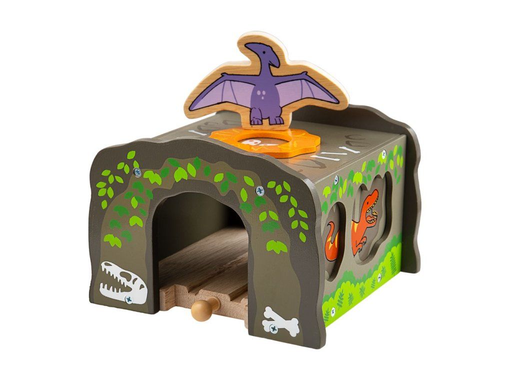 Fantasy dinosauří příslušenství vláčkodráhy, ve kterém se vzrušující svět železnice a prehistorické dinosauři doby spojili v jedno. Tunel přenáší děti do vzrušujícího světa fantazie, když se odváží projet svými vlaky děsivým tunelem a musí se vyhnout divokému T. rexovi a pterodactylovi strážící své hnízdo. Součástí balení je fialový pterodactyl. Hlavní vlastnosti: vláčkodráhy a jejich příslušenství značky Bigjigs Rail je možno kombinovat se všemi dalšími dřevěnými vláčkodráhami na trhu.vyrobeno z kvalitních a zodpovědně získaných přírodních materiálů.odpovídá současným evropským bezpečnostním normám.podporuje představivost, obratnost a koordinaci.Doplňkové parametry