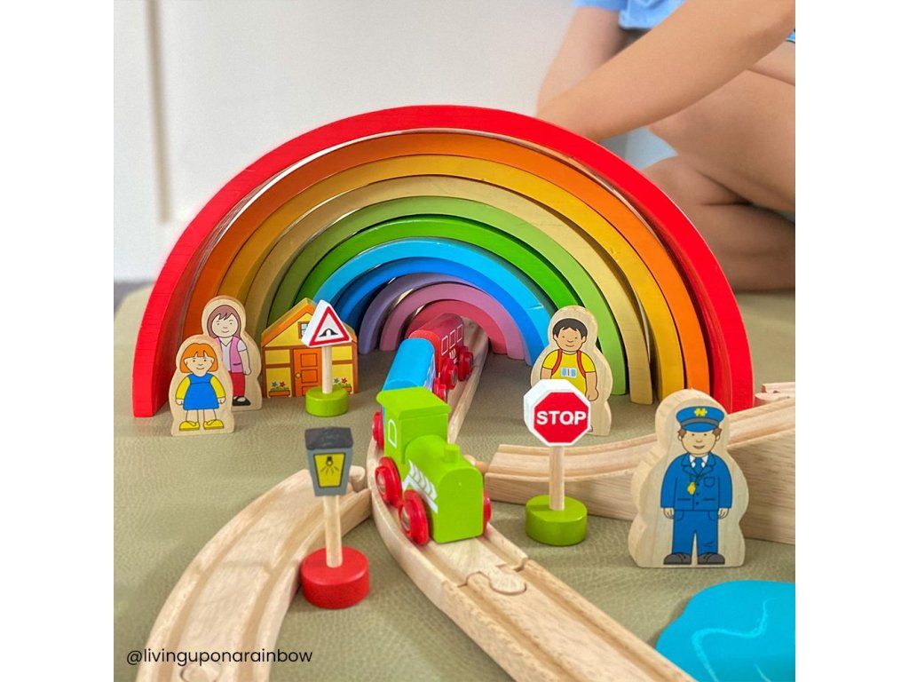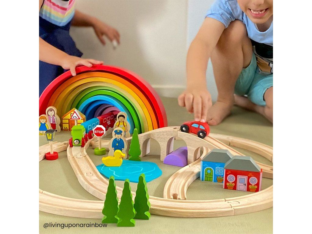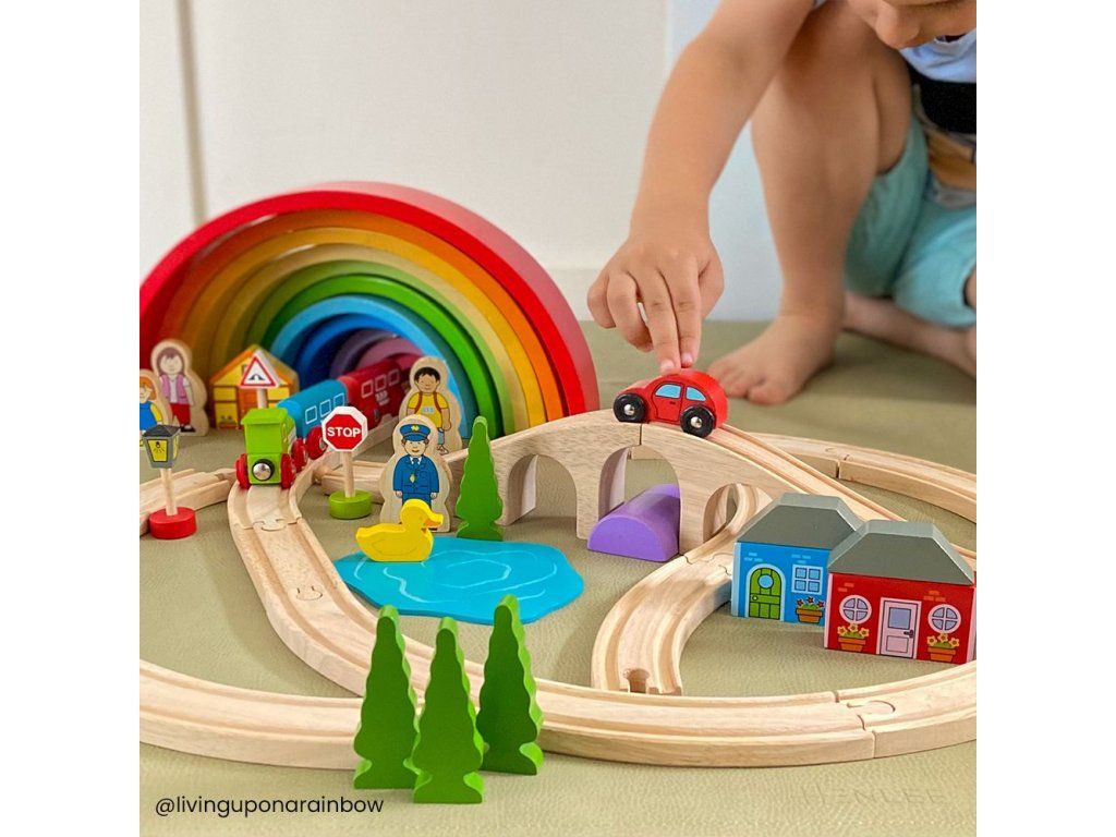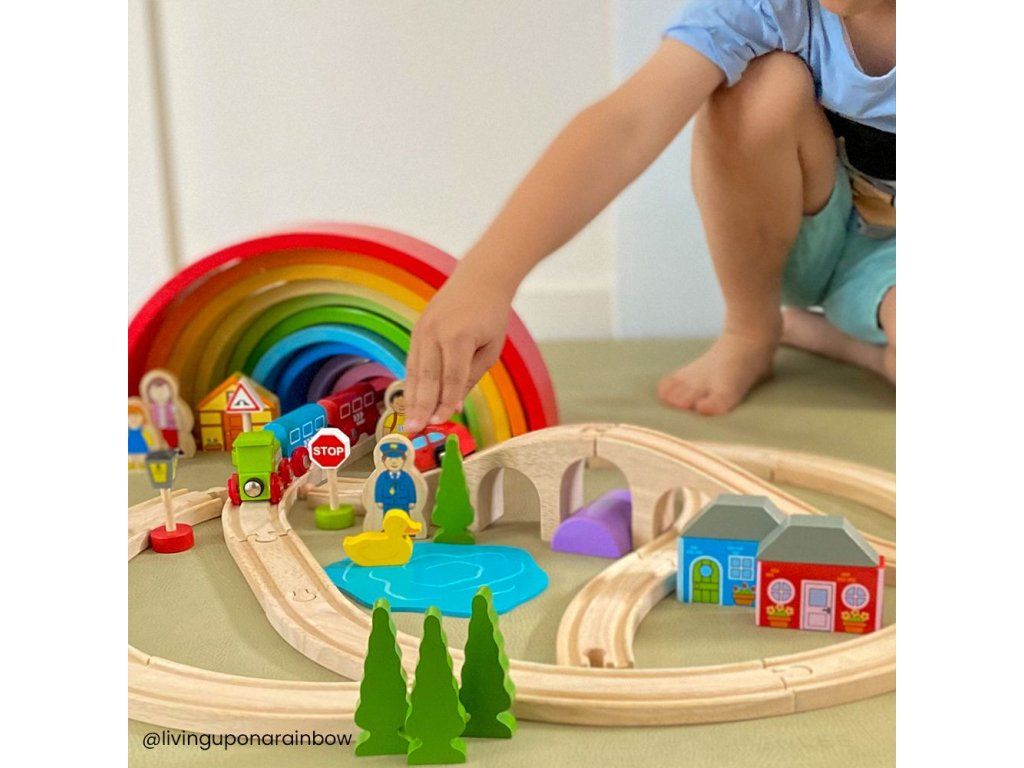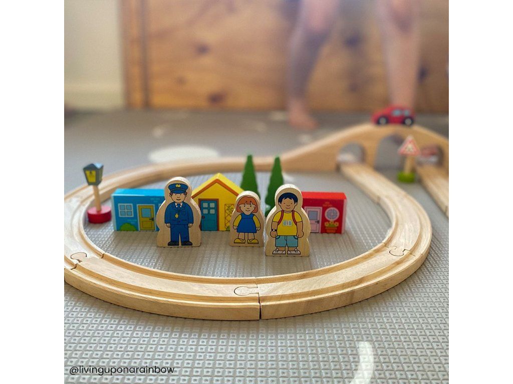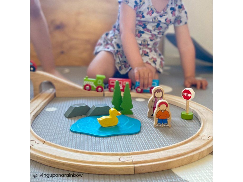 Hrací set můžete libovolně doplňovat dalšími prvky dřevěných kolejí, cest, vláčků, staveb a dalšího příslušenství z naší nabídky. Balení obsahuje: 1 ks most3 ks kolej rovná12 ks kolej zahnutá1 ks domeček1 ks lokomotiva1 ks vagónek modrý1 ks vagónek červený2 ks strom1 ks dopravní značka1 ks výpravčí1 ks holčička Hlavní vlastnosti: Vláčkodráhy a jejich příslušenství značky Bigjigs Rail je možno kombinovat se všemi dalšími dřevěnými vláčkodráhami na trhu.Vyrobeno z kvalitních a zodpovědně získaných přírodních materiálů.Odpovídá současným evropským bezpečnostním normám.Podporuje představivost, obratnost a koordinaci.Doplňkové parametry