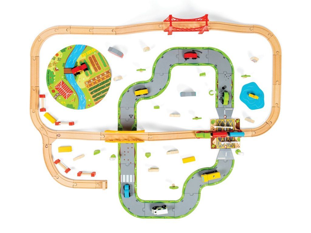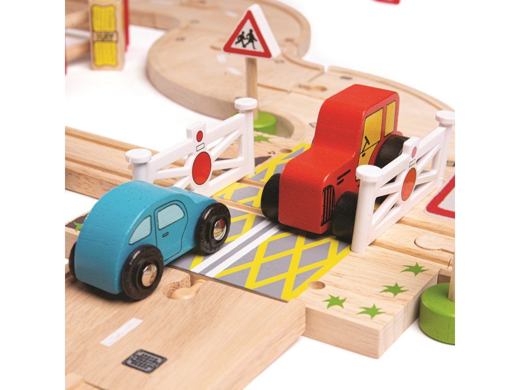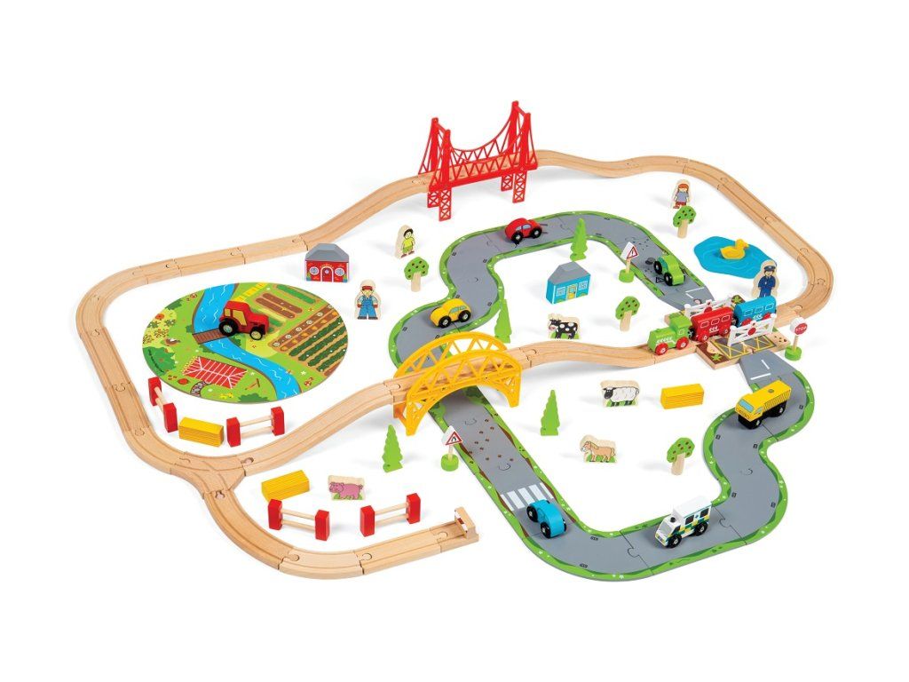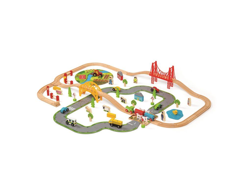 Bigjigs Rail Dřevěná vláčkodráha s venkovskou cestou 80 dílů poškozený obal