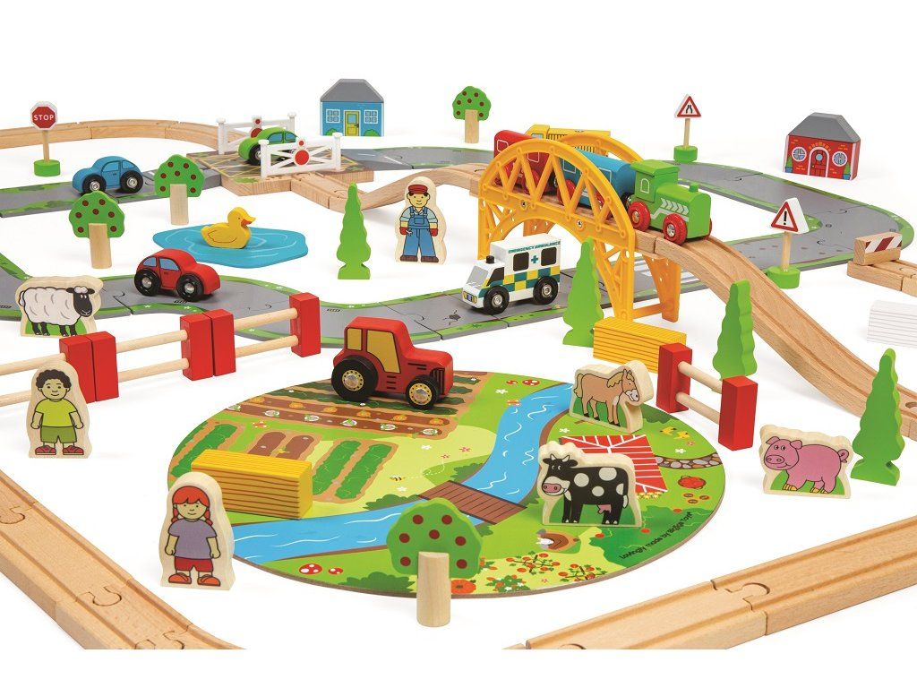 Poškozený obal, nové zboží bez závad. Tento hrací set je ideálním propojením dřevěné vláčkodráhy a autodráhy Bigjigs. Vláčkodráha přirozeně navazuje na cesty pomocí mostu a přejezdu jako v našem běžném dopravním světě. Okolí doplňuje a zkrášluje místní farma, budovy, stromy a autíčka. Hlavní vlastnosti: vláčkodráhy a jejich příslušenství značky Bigjigs Rail je možno kombinovat se všemi dalšími dřevěnými vláčkodráhami na trhuvyrobeno z kvalitních a zodpovědně získaných přírodních materiálůodpovídá současným evropským bezpečnostním normámpodporuje představivost, obratnost a koordinaciDoplňkové parametry