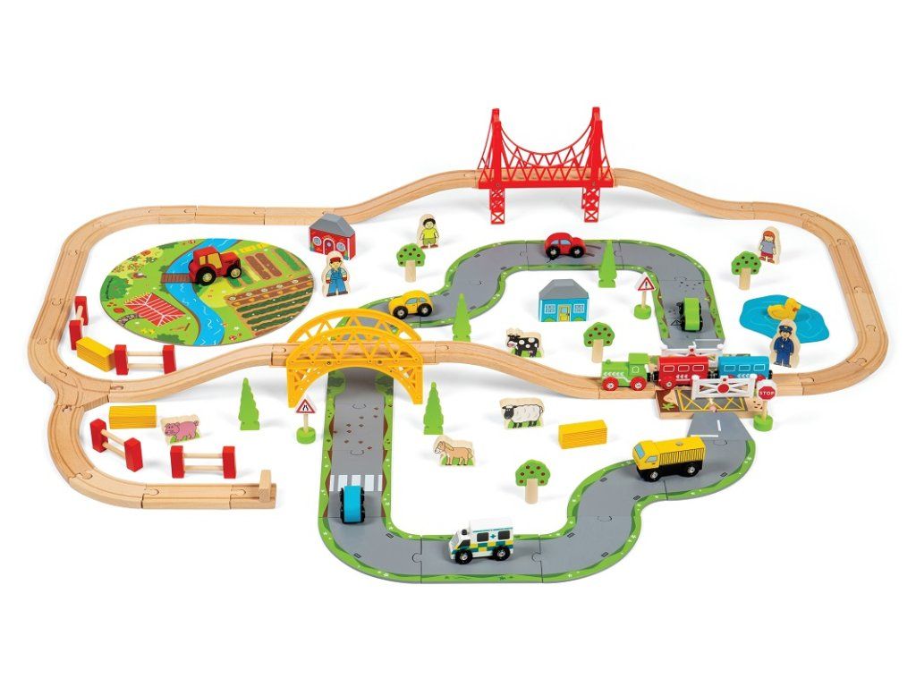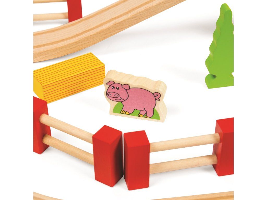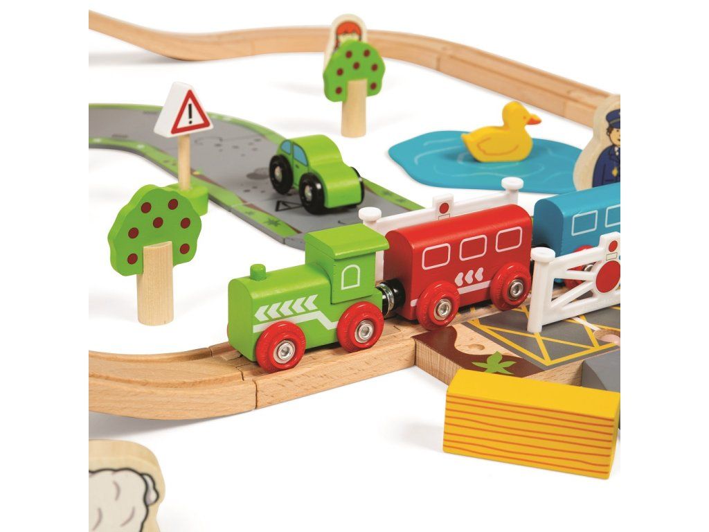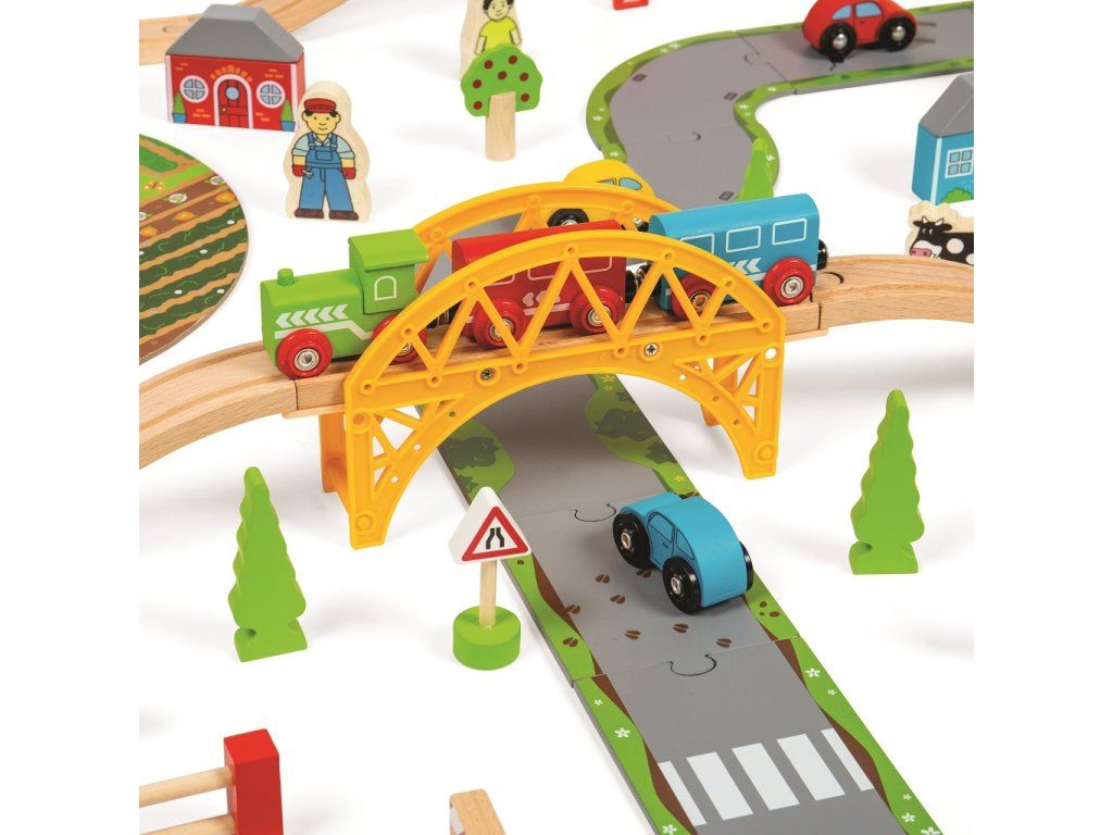 Bigjigs Rail Dřevěná vláčkodráha s venkovskou cestou 80 dílů