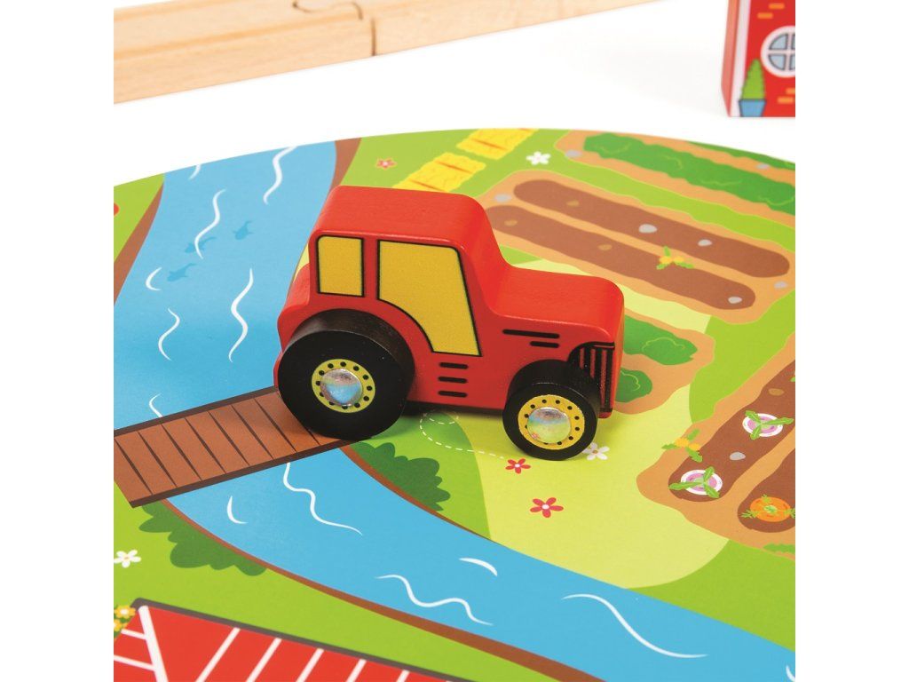 Tento hrací set je ideálním propojením dřevěné vláčkodráhy a autodráhy Bigjigs. Vláčkodráha přirozeně navazuje na cesty pomocí mostu a přejezdu jako v našem běžném dopravním světě. Okolí doplňuje a zkrášluje místní farma, budovy, stromy a autíčka.Hlavní vlastnosti: vláčkodráhy a jejich příslušenství značky Bigjigs Rail je možno kombinovat se všemi dalšími dřevěnými vláčkodráhami na trhuvyrobeno z kvalitních a zodpovědně získaných přírodních materiálůodpovídá současným evropským bezpečnostním normámpodporuje představivost, obratnost a koordinaciDoplňkové parametry
