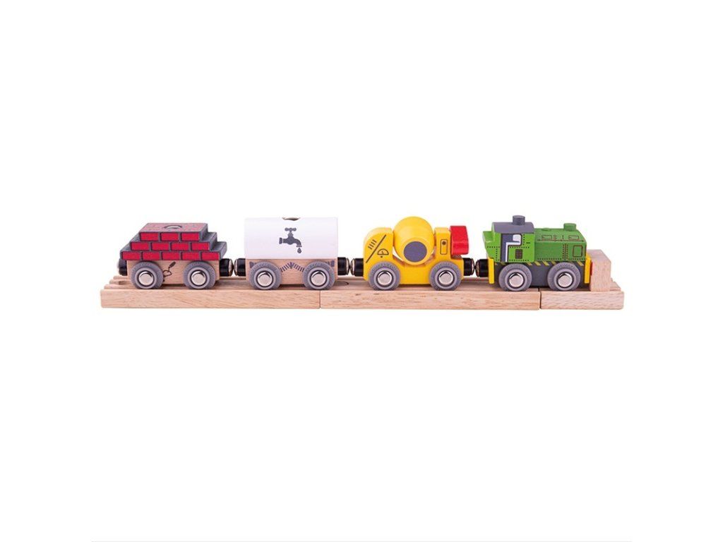 Je to únavná práce na staveništi? Stavební vláček je tu, aby vám pomohl s těžkým zvedáním! Nalož dřevěný vlak a doruč dělníkům cihly, cement a vodu. Vše za chviličku. Stavební vláček je skvělým doplňkem jakékoli dřevěné vlakové soupravy. je 31,5 cm dlouhý a je dodáván se dvěma odnímatelnými náklady, třemi vagóny a zelenou mašinkou. Dřevěný vláček má magnetické spojky, které jej snadno spojí s jinými vláčky a vagóny. Hlavní vlastnosti: Vláčkodráhy a jejich příslušenství značky Bigjigs Rail je možno kombinovat se všemi dalšími dřevěnými vláčkodráhami na trhuVyrobeno z kvalitních a zodpovědně získaných přírodních materiálůOdpovídá současným evropským bezpečnostním normámPodporuje představivost, obratnost a koordinaciDoplňkové parametry