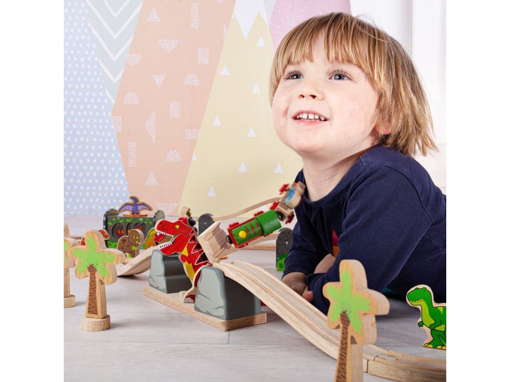 Míchání dinosaurů a vláčků přináší skvělou zábavu! Toto úžasné prehistorické příslušenství bude bavit mladé nadšence do železnice celé hodiny. Kreativní vyprávění je přirozeně inspirováno, když hladový dinosaurus prorazí most, což způsobí, že se trať rozbije a dokonce pošle vlaky létat vzduchem mimo trať! Podporuje kreativní a nápaditou hru. Hlavní vlastnosti: vláčkodráhy a jejich příslušenství značky Bigjigs Rail je možno kombinovat se všemi dalšími dřevěnými vláčkodráhami na trhu.vyrobeno z kvalitních a zodpovědně získaných přírodních materiálů.odpovídá současným evropským bezpečnostním normám.podporuje představivost, obratnost a koordinaci.Doplňkové parametry