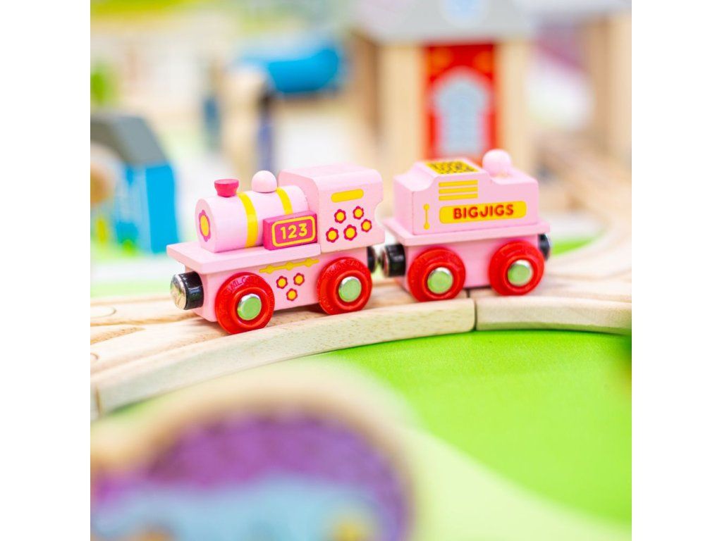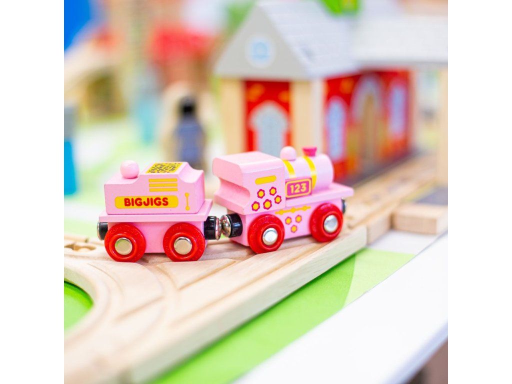 Bigjigs Rail Růžová mašinka s tendrem
