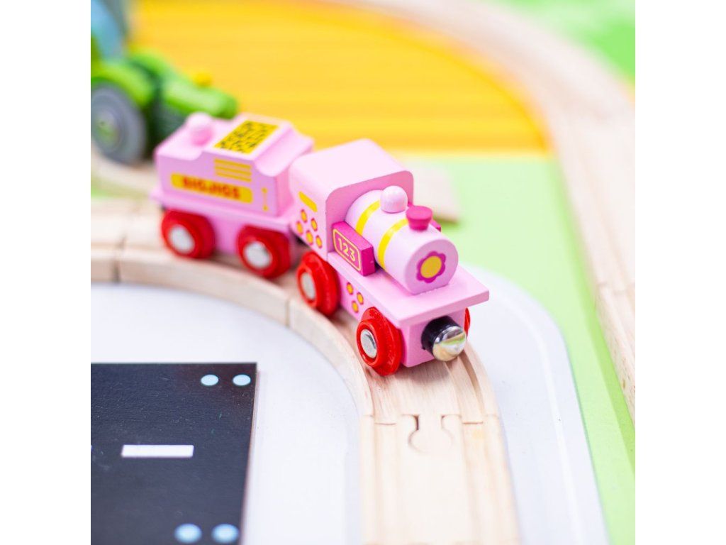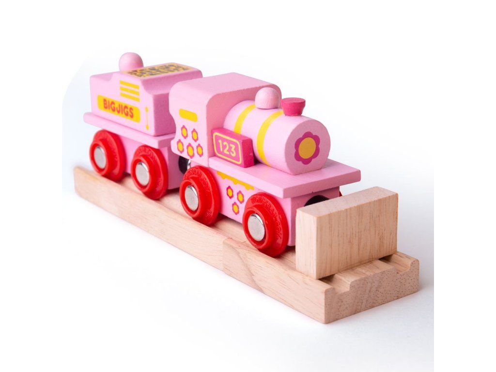 Huuu, huuu! Tato tradiční růžová lokomotiva má na svých koncích magnetické spojky, takže děti mohou snadno vytvořit řadu vagónků jedoucích za sebou. Ideální první vláček ke dřevěnému železničnímu systému vláčkodráh. Hlavní vlastnosti: Vláčkodráhy a jejich příslušenství značky Bigjigs Rail je možno kombinovat se všemi dalšími dřevěnými vláčkodráhami na trhu.Vyrobeno z kvalitních a zodpovědně získaných přírodních materiálů.Odpovídá současným evropským bezpečnostním normám.Podporuje představivost, obratnost a koordinaci.Doplňkové parametry