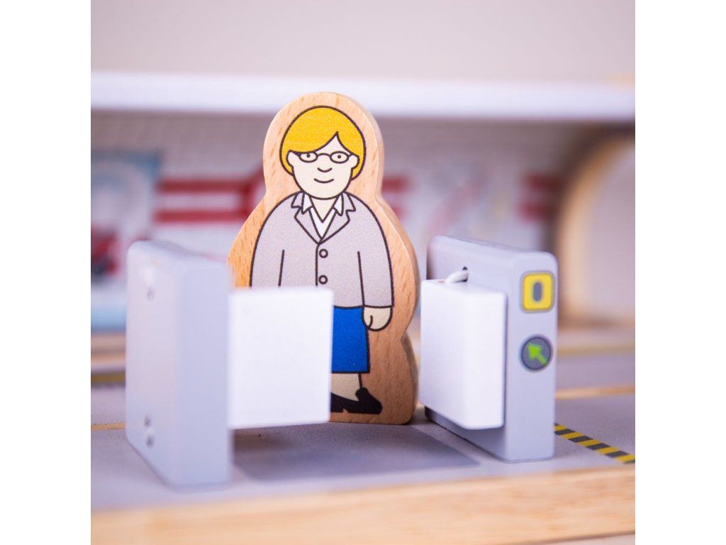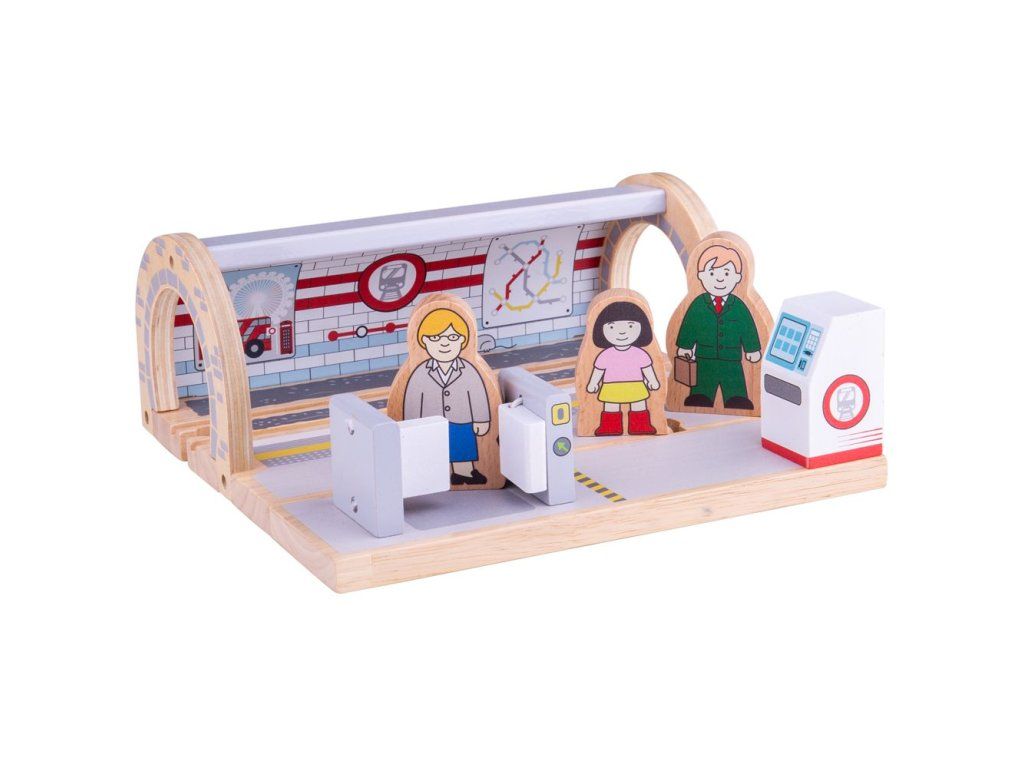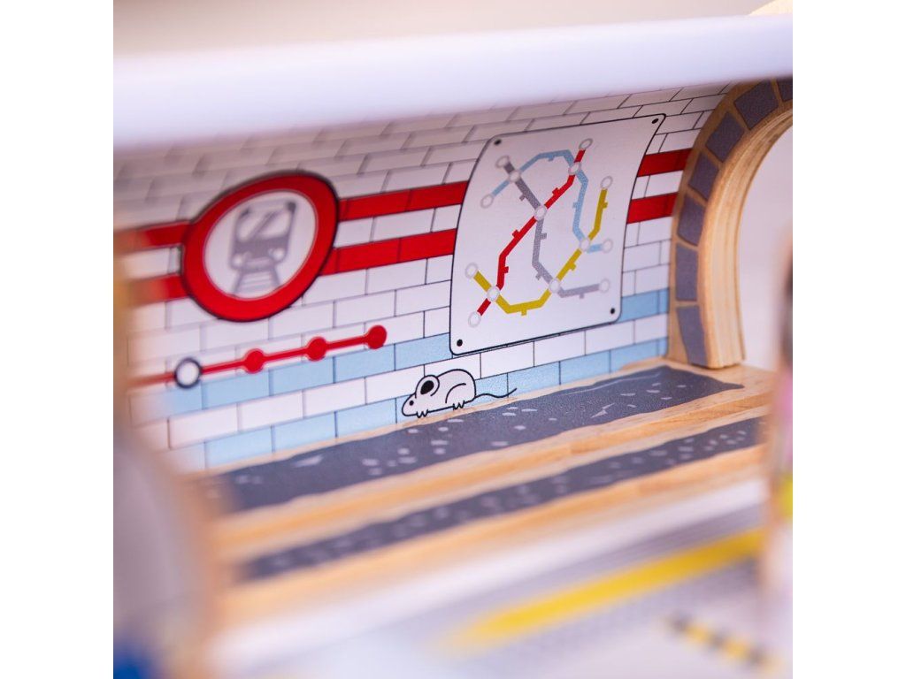 Na první kolej přijíždí souprava metra, prosíme, nepřekračujte žlutou čáru! Stanice metra je dřevěnou replikou ikonické londýnské zastávky metra, kde si cestující zakoupí lístky, projdou bránou a nastoupí do metra. Tato dřevěná hračka obsahuje automat na jízdenky, bránu pro označení jízdenek a 3 postavičky pasažérů. Hlavní vlastnosti: vláčkodráhy a jejich příslušenství značky Bigjigs Rail je možno kombinovat se všemi dalšími dřevěnými vláčkodráhami na trhuvyrobeno z kvalitních a zodpovědně získaných přírodních materiálůodpovídá současným evropským bezpečnostním normámpodporuje představivost, obratnost a koordinaciDoplňkové parametry