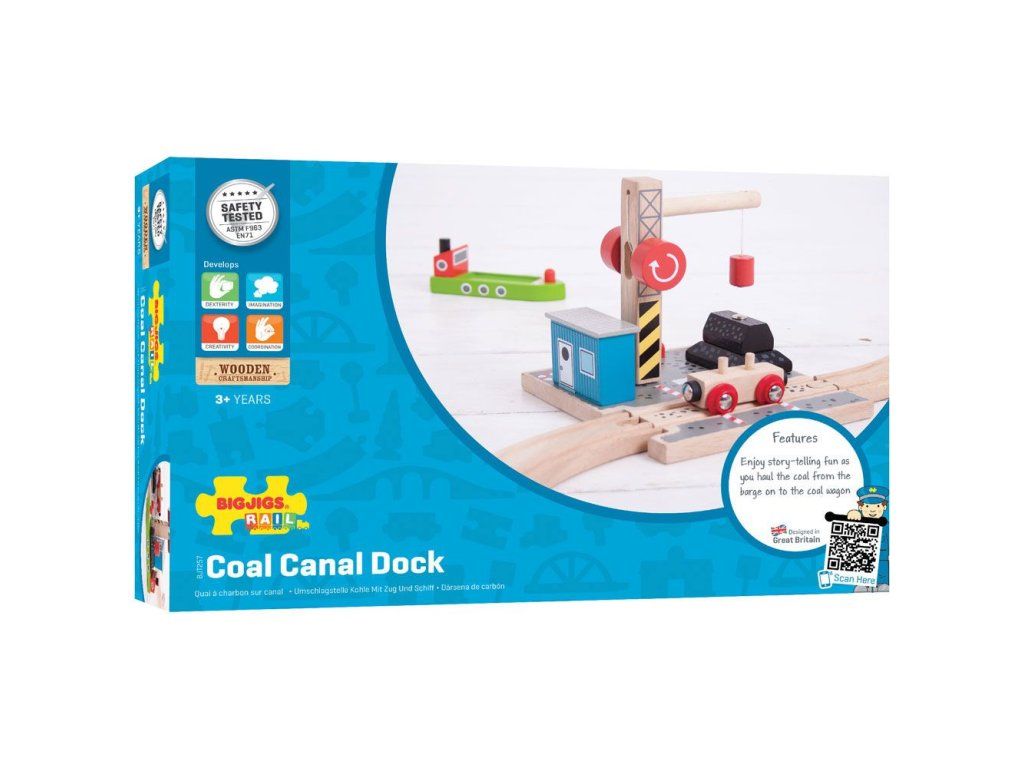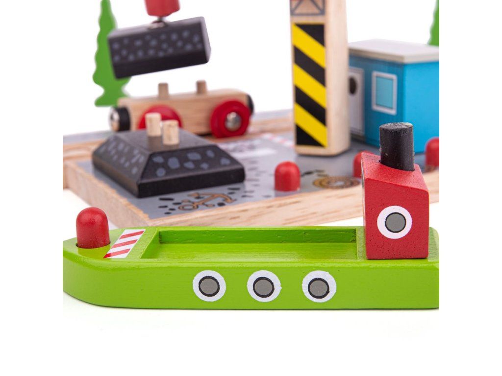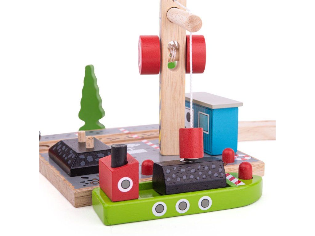 Toto krásné přístaviště zvýší dětskou představivost a hraní si na reálný svět! Set obsahuje nákladní loď, dřevěný jeřáb s magnetickou kladkou, vagónek s uhlím. Set slouží k překládání nákladu z vagónku na loď pomocí magnetického jeřábu. Hlavní vlastnosti: Vláčkodráhy a jejich příslušenství značky Bigjigs Rail je možno kombinovat se všemi dalšími dřevěnými vláčkodráhami na trhu.Vyrobeno z kvalitních a zodpovědně získaných přírodních materiálů.Odpovídá současným evropským bezpečnostním normám.Podporuje představivost, obratnost a koordinaci.Doplňkové parametry