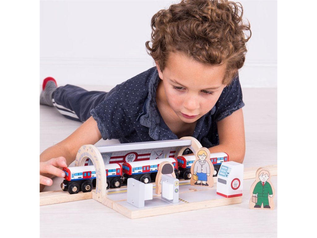 Přijíždí souprava metra! Do které stanice máte namířeno? Vagóny metra jsou dřevěnou replikou ikonické londýnské soupravy metra, která převáží nejen turisty, ale taky Londýňany. Pěkný doplněk jakéhokoliv setu dřevěných vláčků. Balení obsahuje: 3 vagónky a 3 kusy dřevěných kolejí. Hlavní vlastnosti: vláčkodráhy a jejich příslušenství značky Bigjigs Rail je možno kombinovat se všemi dalšími dřevěnými vláčkodráhami na trhu.vyrobeno z kvalitních a zodpovědně získaných přírodních materiálů.odpovídá současným evropským bezpečnostním normám.Podporuje představivost, obratnost a koordinaci.Doplňkové parametry