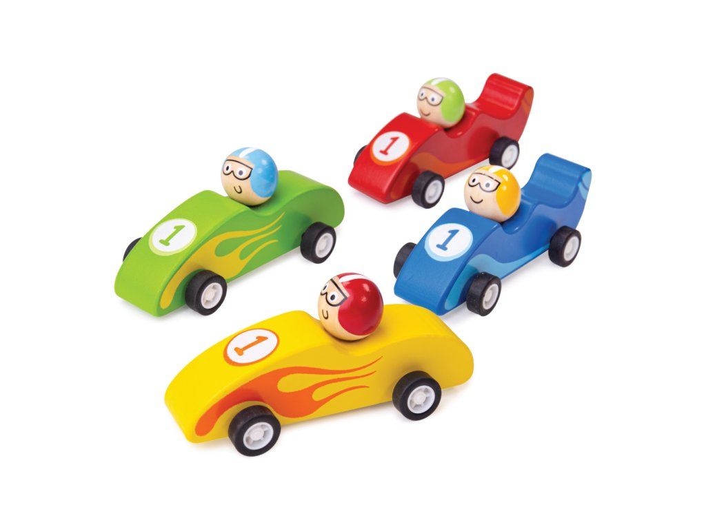 Bigjigs Toys Barevné dřevěné závodní auto 1 ks