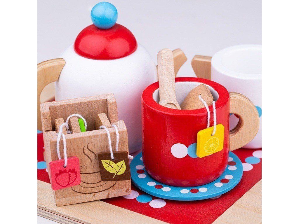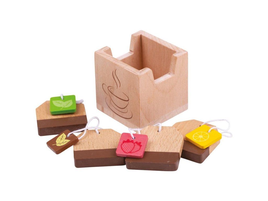 Pořádáte čajový dýchánek? Děti mohou s touto hračkou svým hostům nabídnout různé příchutě čaje. Tyto jedinečně stylizované čajové sáčky nabízí příchutě jako citrón, jahoda a máta. Set je dodáván v jednoduchém dřevěném boxu, do kterého se mohou čajové sáčky po skončení dýchánku uložit. Krásná hračka, která doplní dětskou kuchyňku nebo obchod. Hlavní vlastnosti: podporuje děti k představivé hře rozvíjí jemnou i hrubou motorikuskvělý způsob, jak děti naučit sociální dovednosti a mravyvyrobeno z kvalitních materiálů z odpovědných zdrojůodpovídá evropské bezbečnostní norměDoplňkové parametry