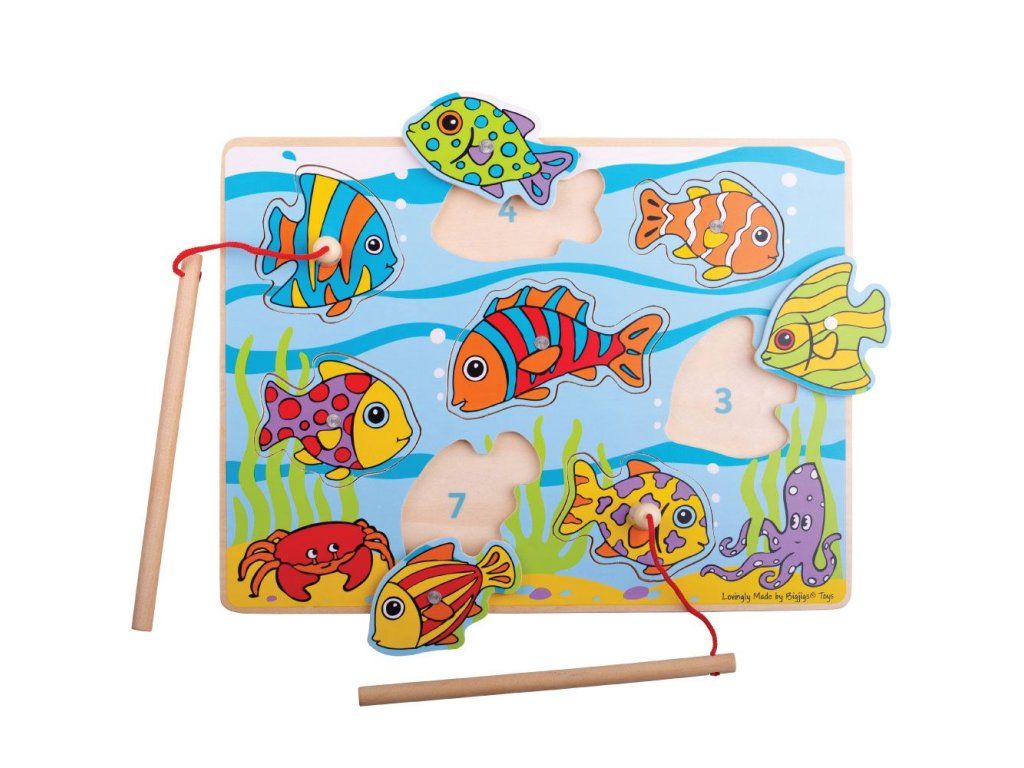 Tyto pestrobarevné dřevěné rybky lze chytit na magickou magnetickou udici a jakmile jsou bezpečně připevněny, lze je vrátit zpět na dřevěnou základnu a chytat znovu a znovu. Vyžaduje dovednost a koncentraci, protože každou rybu je třeba umístit zpět do správného slotu! Pomáhá rozvíjet obratnost a koordinaci. Vyrobeno z vysoce kvalitních, zodpovědně získaných materiálů. Splňuje aktuální evropské bezpečnostní normy. Obsahuje 10 dílů. Hlavní vlastnosti: obsahuje 10 dílůchycenou rybu je třeba umístit zpět do správného slotupomáhá rozvíjet obratnost a koordinaciDoplňkové parametry