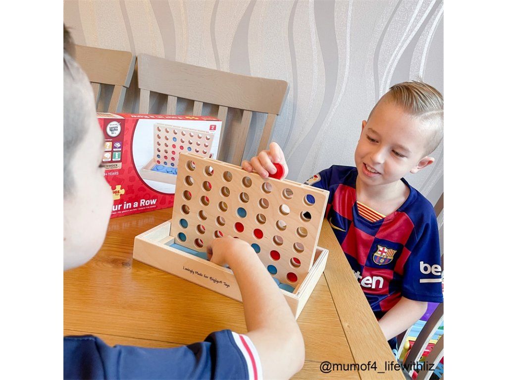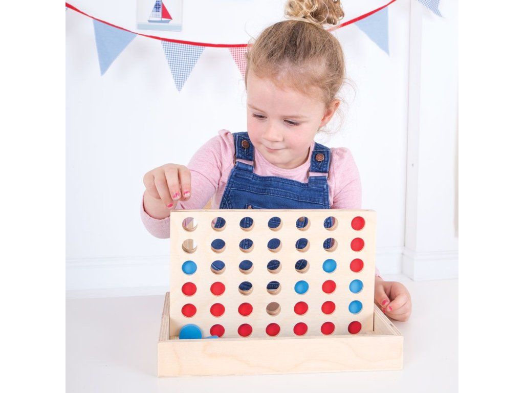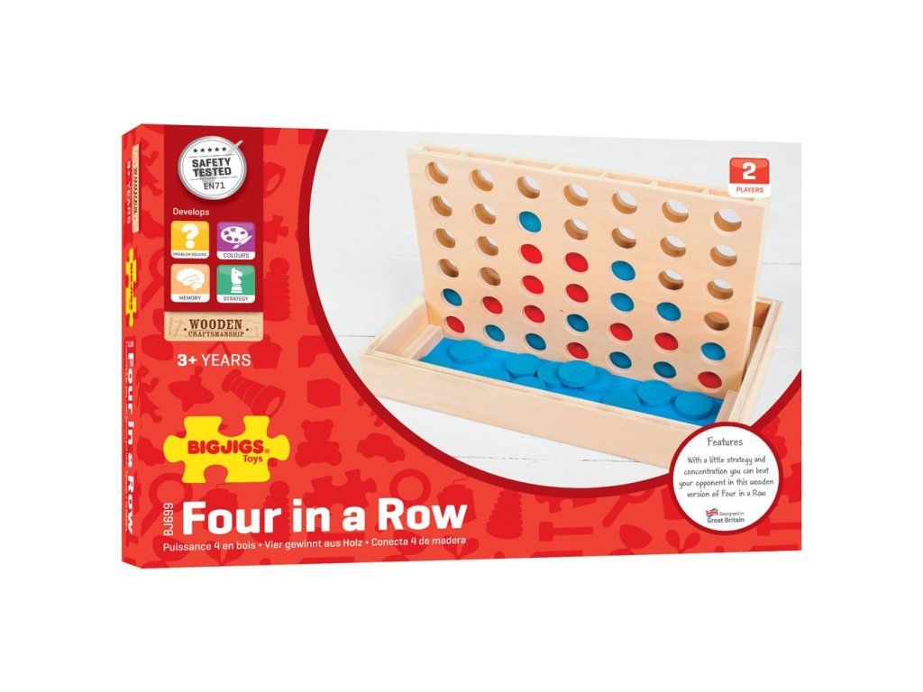 Čtyři v rovině je klasická strategická hra pro dva hráče. Zabaví děti na hodiny, když se snaží porazit svého soupeře. Jak vyhrát čtyři v řadě? Hráč, který jako první umístí 4 žetony horizontálně, vertikálně nebo diagonálně, vyhrává hru. Současně musí hráč v tomto cíli také zabránit soupeři.Čtyři v řadě pomáhají dětem rozvíjet schopnosti logického myšlení a jemnou motoriku , když umísťují své žetony do různých slotů - vertikálně, horizontálně nebo diagonálně. Jednoduchá, ale účinná soutěžní desková hra .Čtyři v řadě je vyrobeno z kvalitních , odpovědně ze zdrojů materiálů. Pulty jsou potaženy netoxickými barvami a laky. Splňuje aktuální evropské bezpečnostní normy. Hlavní vlastnosti: klasická dřevěná desková hraurčeno pro 2 hráčeobsahuje červené a modré žetonyDoplňkové parametry