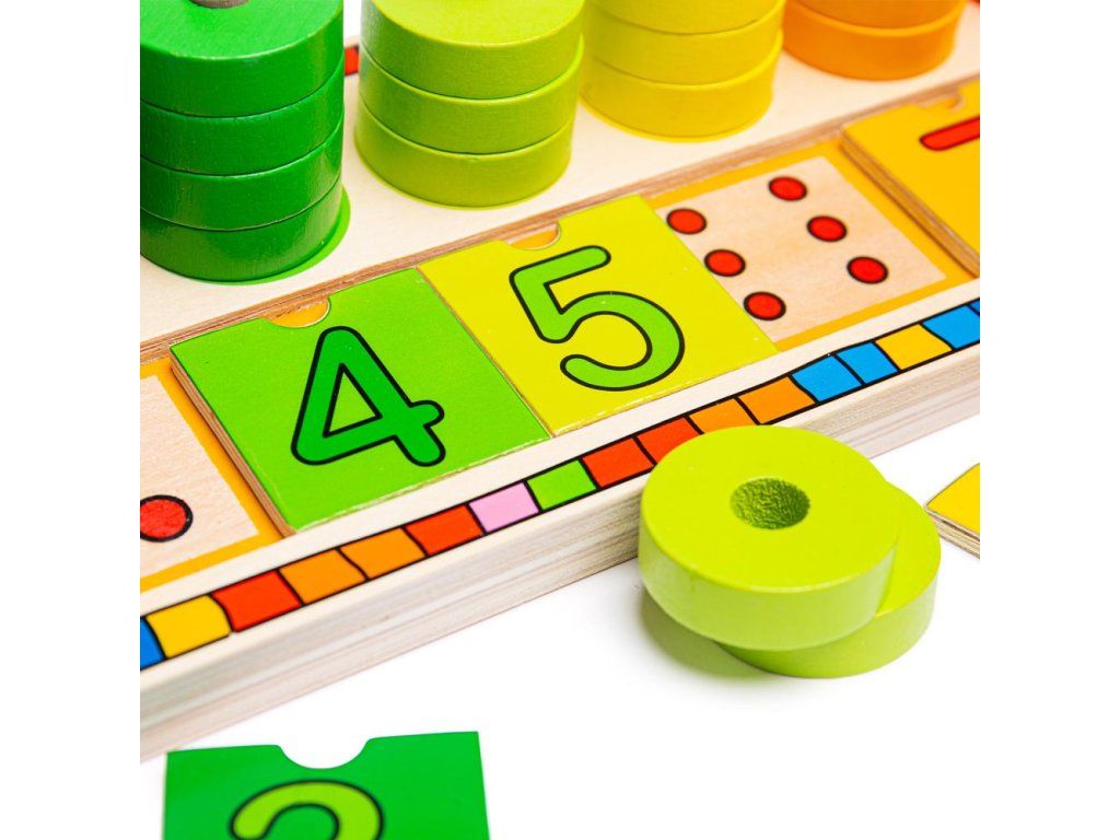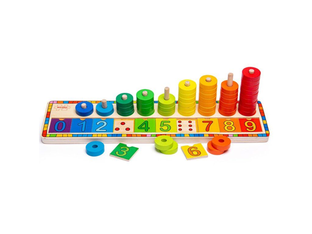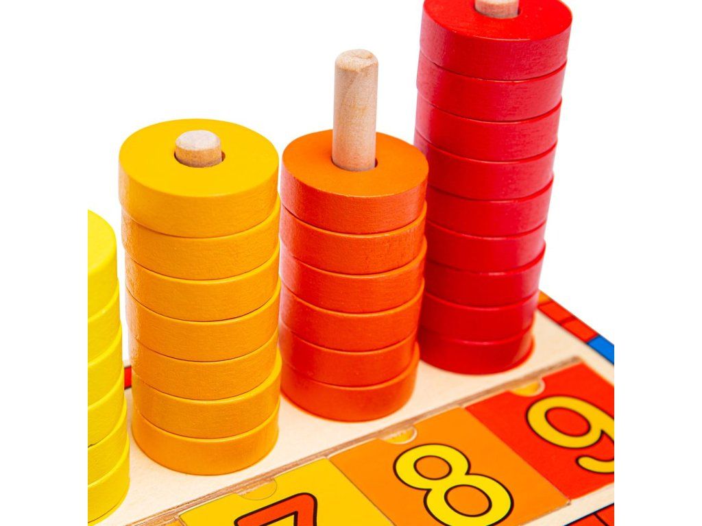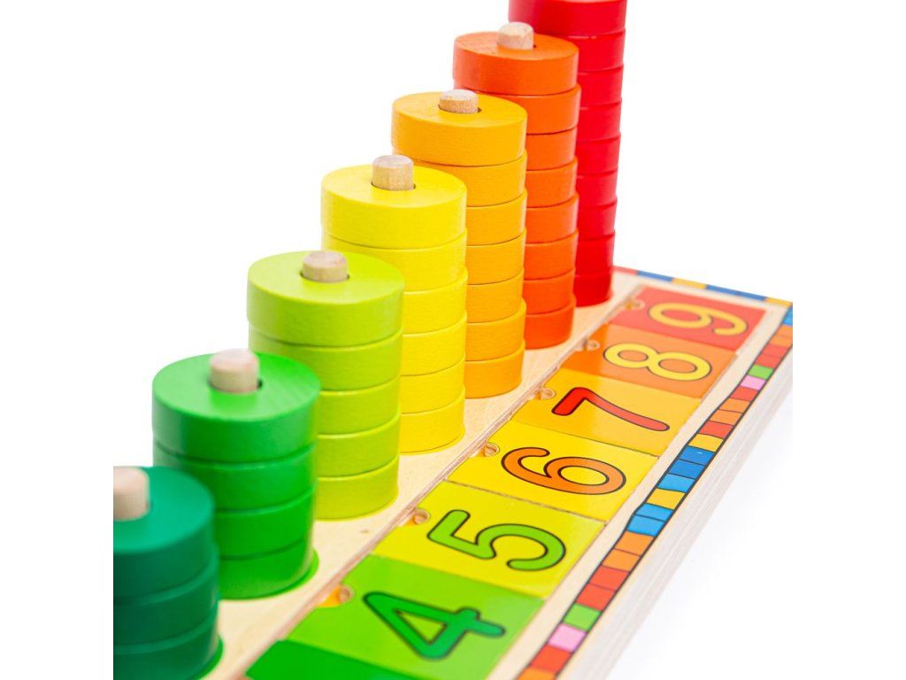 Vaše děti budou milovat tuto velmi aktivní hračku, která obsahuje spoustu barevných disků, které se dají nasouvat na sebe po dřevěné tyčce, a číslic, jež se vkládají do dřevěné destičky. Ideální pro rozvíjení zručnosti, koordinaci a samozřejmě máte i možnost rozvíjet v dítěti jeho vztah k počítání.Hlavní vlastnosti: rozvíjí motoriku dětí a koordinaci pohybůnaučí děti rozlišovat tvary, barvy a číslapodporuje logické myšlení dětí hravou formouDoplňkové parametry