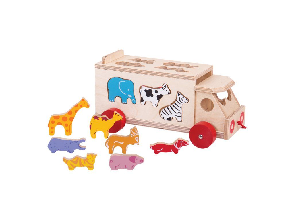 Roztřiďte tvary a naučte se vše o zvířatech. Vložte každé zvířátko do správného otvoru, zkontrolujte, zda jsou zadní dveře auta zavřené a táhnutím za šňůrku můžete vyjet. Tato pestrobarevná dřevěná zvířata lze naložit na nákladní vůz nebo je prostrčit pomocí speciálních otvorů. Hra pomáhá rozvíjet zručnost a koordinaci ruka-oko. Vyrobeno z vysoce kvalitních materiálů z odpovědných zdrojů. Vyhovuje současným evropským bezpečnostním normám. V balení 11 dílků. Hlavní vlastnosti: obsahuje 11 kusůrozvíjí zručnost a koordinaciDoplňkové parametry