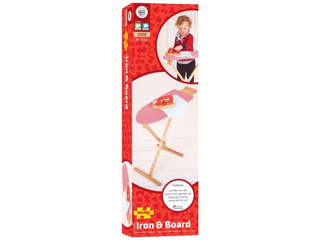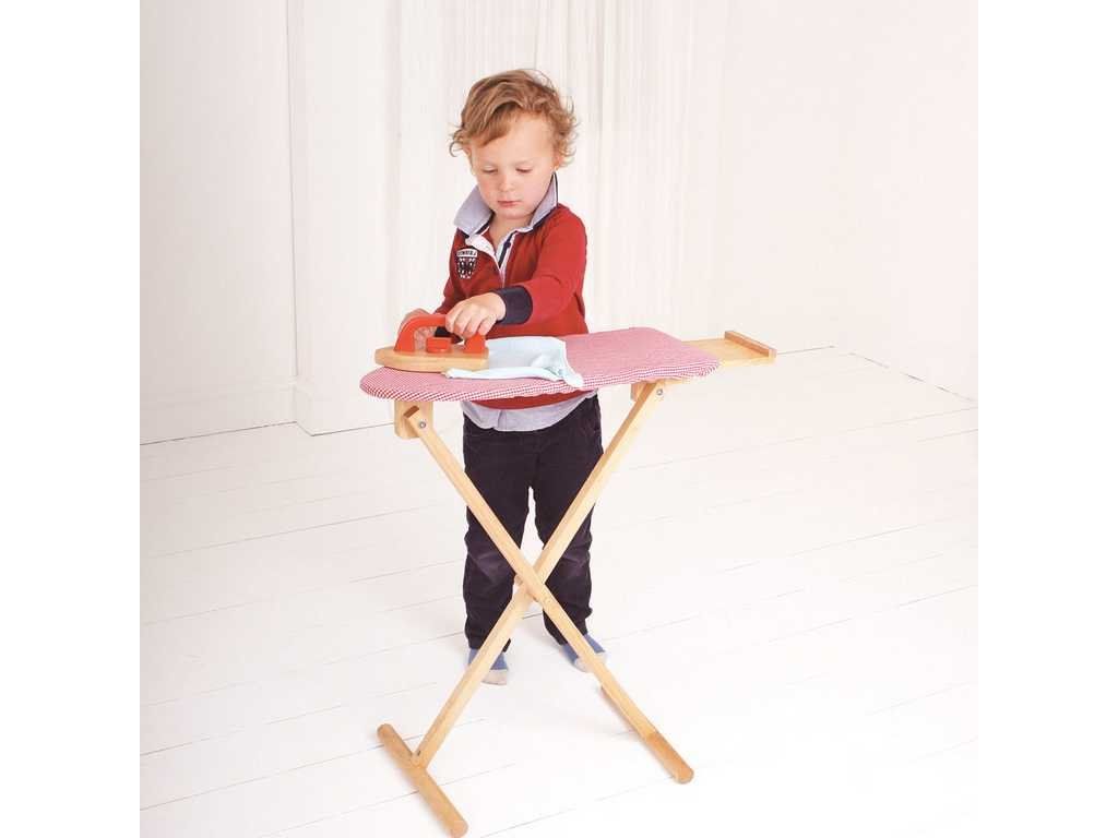 Vaši nejmenší budou jistě nadšení z tohoto jasného a robustního dřevěného žehlícího prkna a dřevěné žehličky. Ideální k žehlení oblečení pro panenky, nebo k pomáhání žehlení mamince či tatínkovi. Skvělý doplněk k našemu dřevěnému sortimentu pro domácnost. Vyrobeno z vysoce kvalitních, zodpovědně získaných materiálů. Splňuje aktuální evropské bezpečnostní normy. Hlavní vlastnosti: obsahuje dřevěné žehlící prkno potažené látkou a dřevěnou žehličkoupodporuje kreativitu, zručnost a realistickou hruDoplňkové parametry
