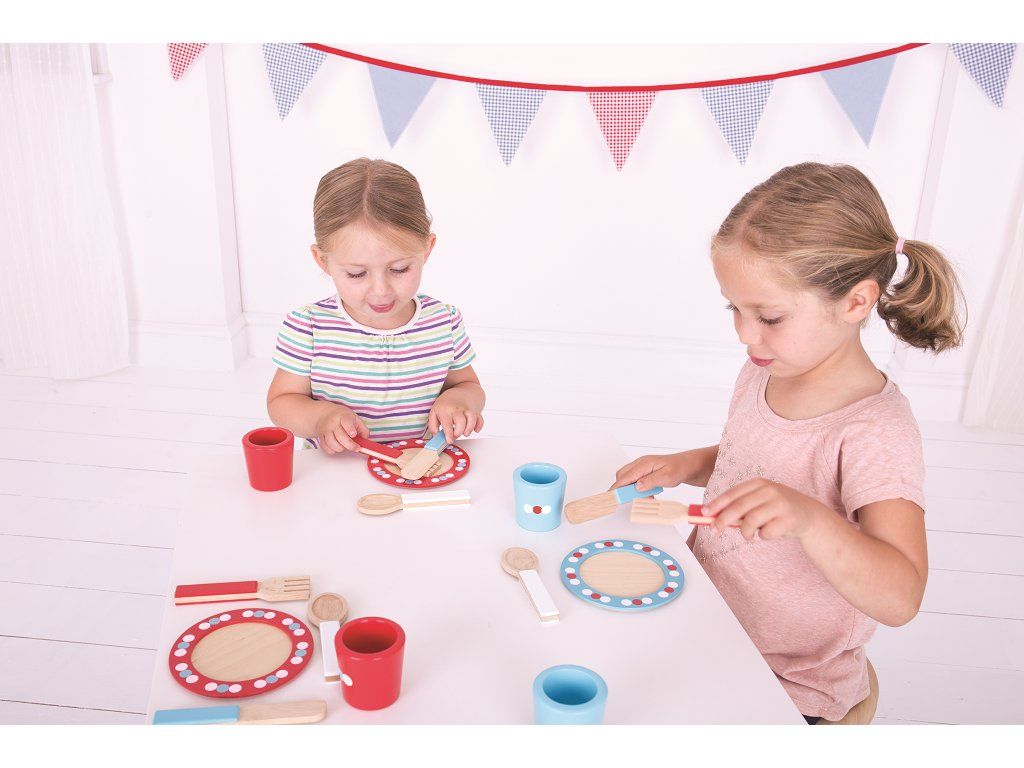 Bigjigs Toys Dřevěný jídelní servis s puntíky