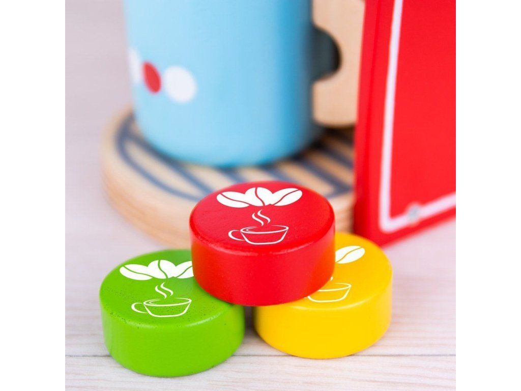 Bigjigs Toys Dřevěný kávovar červený