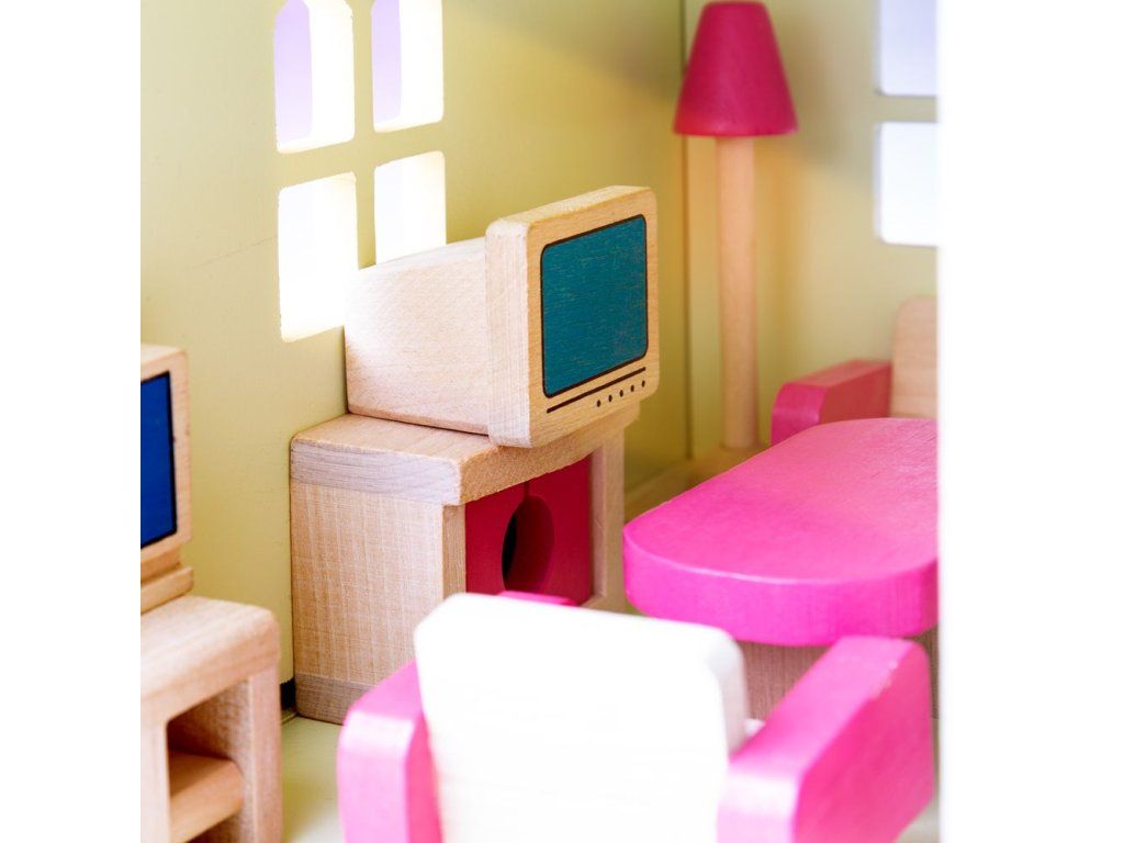 Tady je skvělá sada dřevěného nábytku, díky které si můžete vybavit jakýkoli domeček. Nábytek plně vybaví kuchyň, obývací pokoj, ložnici, koupelnu a dokonce i podkroví. Tyto nádherně detailní dřevěné kousky pomohou mladým představám znovu a znovu vytvářet okouzlující interiérové scény. Skládá se z 26 kusů nábytku. Vyrobeno z vysoce kvalitních materiálů ze zodpovědných zdrojů. Odpovídá současným evropským bezpečnostním normám. Hlavní vlastnosti: obsahuje 26 dílů nábytkuvyrobeno ze dřeva z udržitelných zdrojůrozvíjí kreativitu a představivostvhodné jako kompletní sada do prvního domečku našich malých princezenDoplňkové parametry