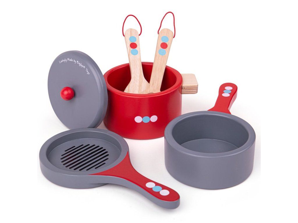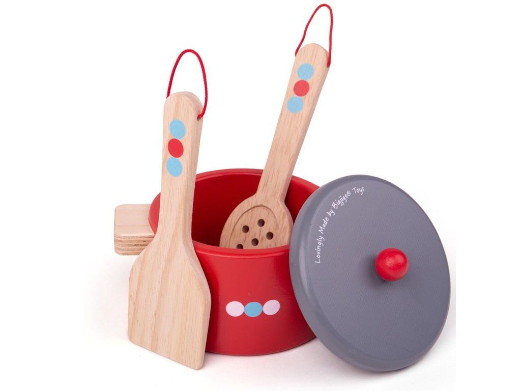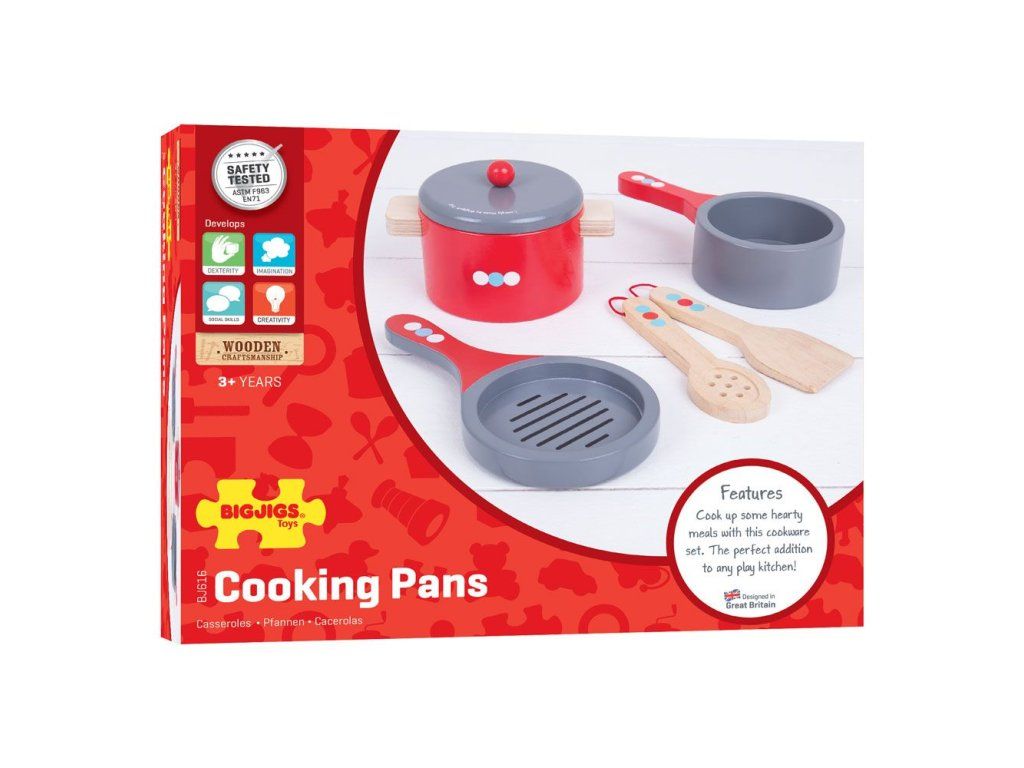 Začínající mladí kuchaři budou moci s tímto nádherným dřevěným setem uvařit vydatná jídla . Tato hrací sada obsahuje pánev, dva hrnce a dřevěné náčiní. Perfektní doplněk do každé dřevěné kuchyňky na hraní. Co dnes vaříš? Polévka? Těstoviny? Vaše dítě se naučí, jak správně držet a používat kuchyňské náčiní, a brzy bude vařit rodinnou hostinu! Tato dřevěná herní sada zaručeně vytvoří hodiny zábavy. Hlavní vlastnosti: obsahuje 6 dílůpodporuje kreativitu a nápaditostrozvíjí sociální dovednostizlepšuje obratnost a motorikuDoplňkové parametry